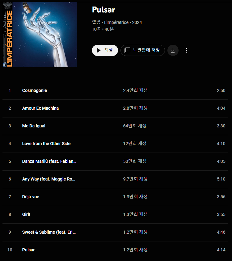 2024년 1월 내내 신곡을 안듣고 있다. 대게 좋아하는 국내 인디팝, 힙합, 록, 팝 장르 별로 신곡 체크하는 것 자체도 번아웃이 잘 오는데 이걸 포스팅이나 유튜브 플레이리스트로 옮기는 것도 여간 힘든 일이 아니다. 현생에도 치이고 체력이 일반사람 같지가 않으니 그냥 몸이 너무 힘들어 1년에 걸그룹 플리 정리하는 것 정도도 벅 찬 이유다. 효율화를 위해 원래 하던 1절만 듣기 중간 편집도 안 하고 이제는 그냥 통으로 올린다 (음악에서 음악으로 안 끊기는 정도만 유지)