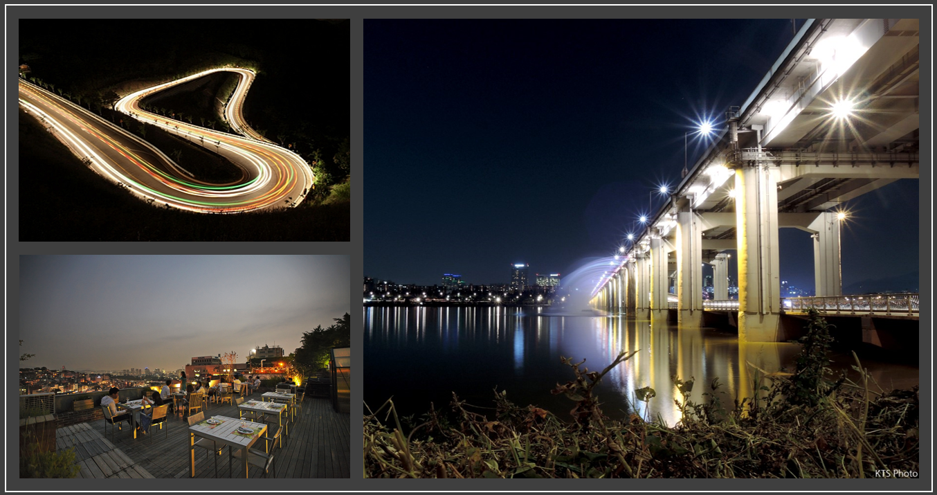 쥬황색 동선은 남산도서관을 건너로 한 횡단보도까지 이어지는데 여기에는 시련의 계단이 두 곳 있다. 가장 유명한 것은 남산으로 이어지는 [후암 전망대]가 있는 계단일 것이다. 지금은 전망대도 있고 엘리베이터도 생겼지만 그 옛날엔 얄짤없이 걸어 올라갔다가 내려와야 하는 무릎 작살 건강?운동 코스였다. 그 시절의 로맨티시스트들과 아이들은 가위바위보를 하며 올라가기도 했다. (참고로 그 삼순이 계단으로 알려진 실제 연인 계단은 근처 남산도서관(분관)에서 남산 케이블카 방향으로 있다) 그리고 다른 하나가 그 두 번째 시련의 계단을 암시하는 미니 버전의 좁은 후암동 34길에서 용산도서관으로 이어지는 첫 번째 시련의 계단 코스다. 용산도서관으로 오르면 남산으로 직행하거나 후암초등학교 방향으로 해서 해방촌으로 빠질 수도 있다. 두 번째 시련의 계단에서 강북 방향으로 돌아보는 야경은 많이들 봤겠지만, 이 첫번째 시련의 계단으로 올라가다 뒤돌아 보는 야경의 맛도 소소하니 괜찮다.