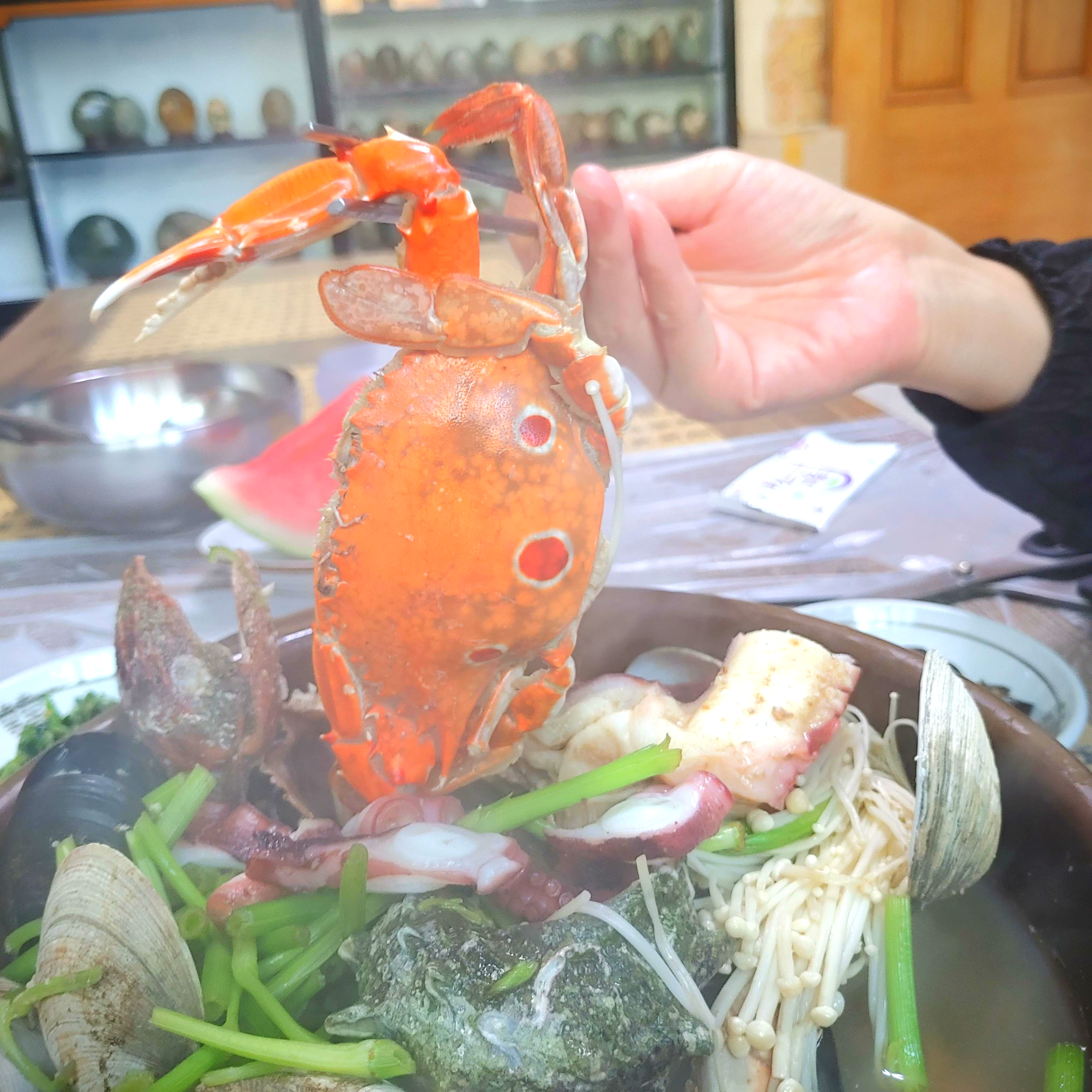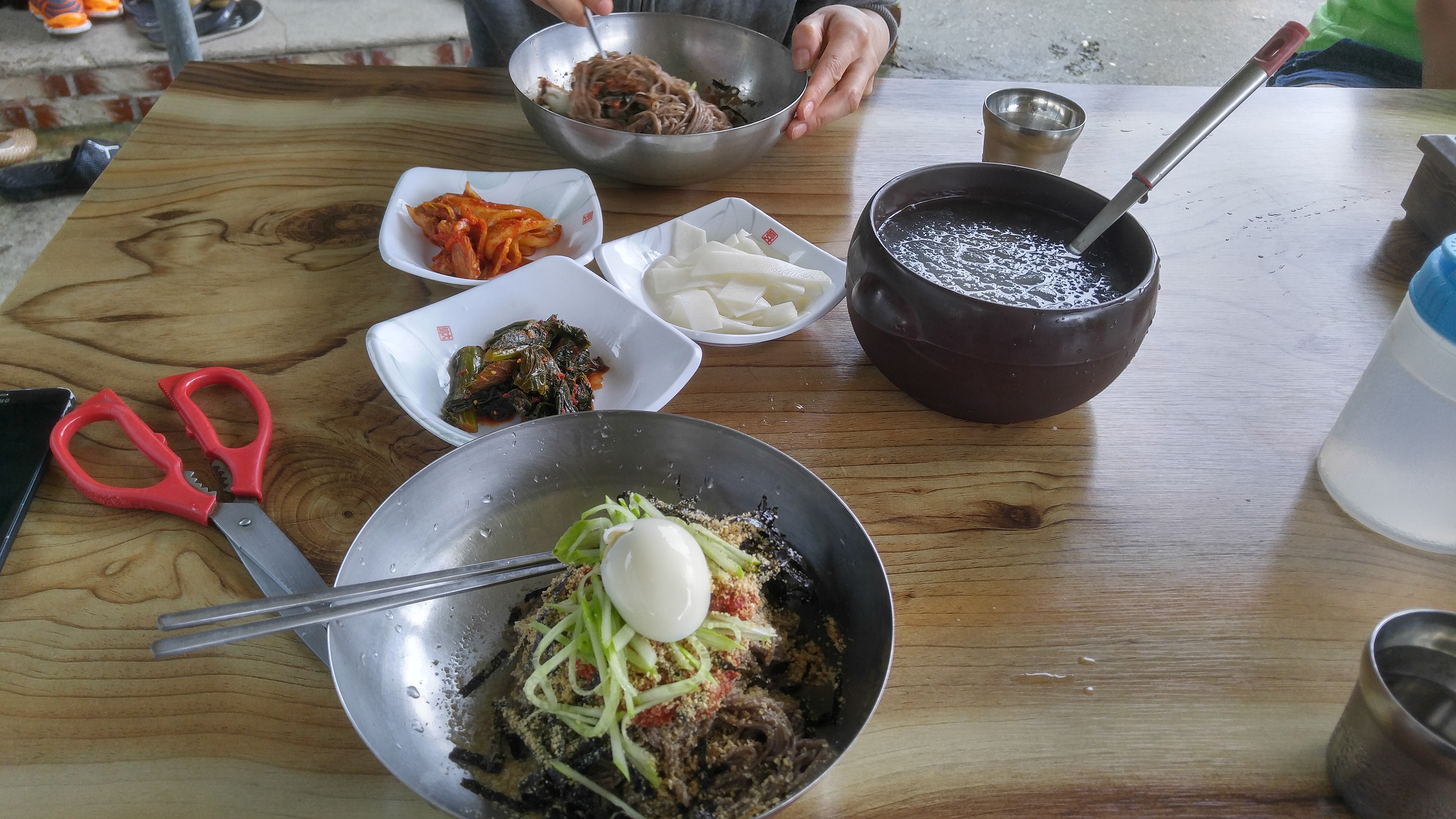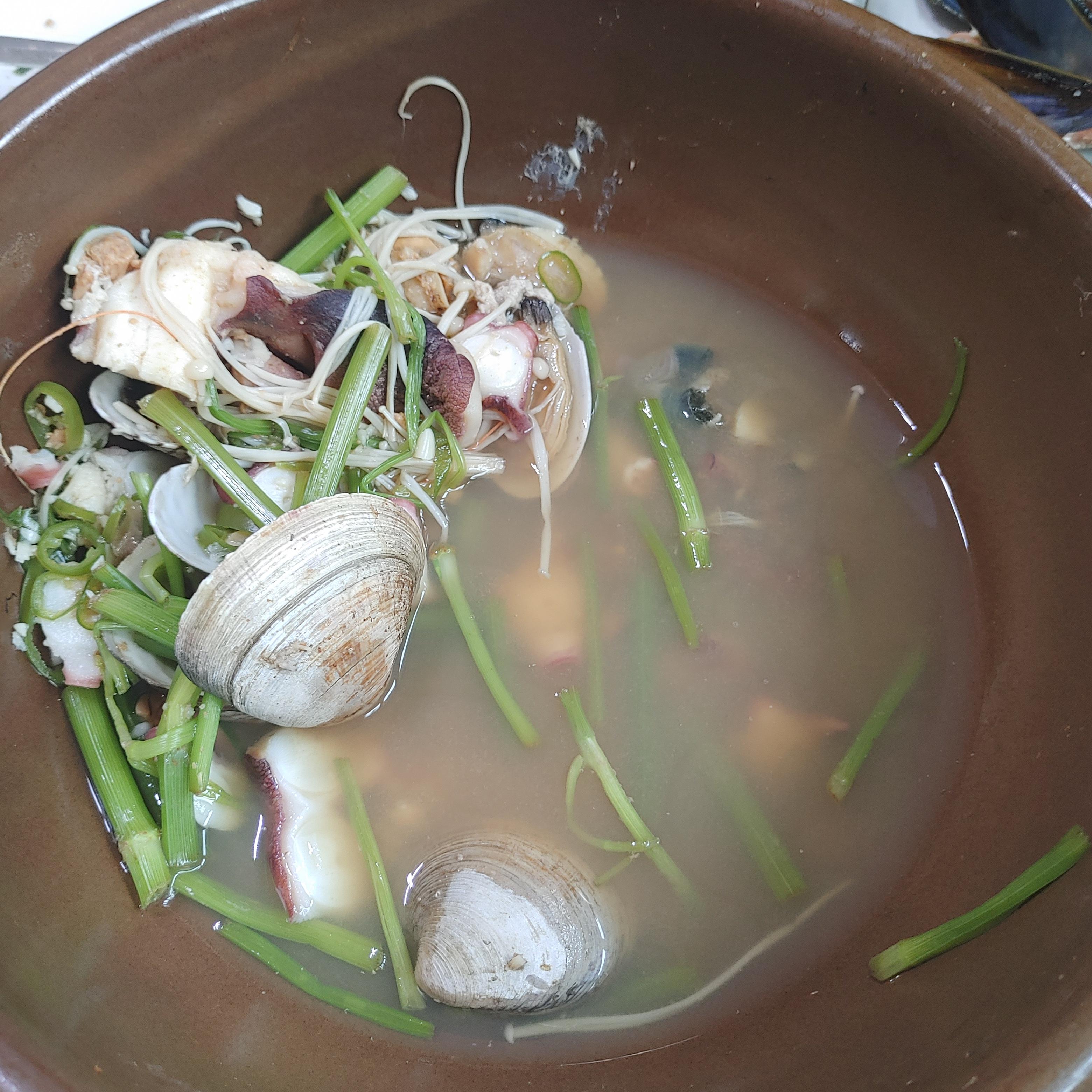 맑은 국물 먹다가 이제 슬슬 배가 찰 때 즈음 장을 넣어서 좀 먹어주고 대망의 피날레를 장식하는...