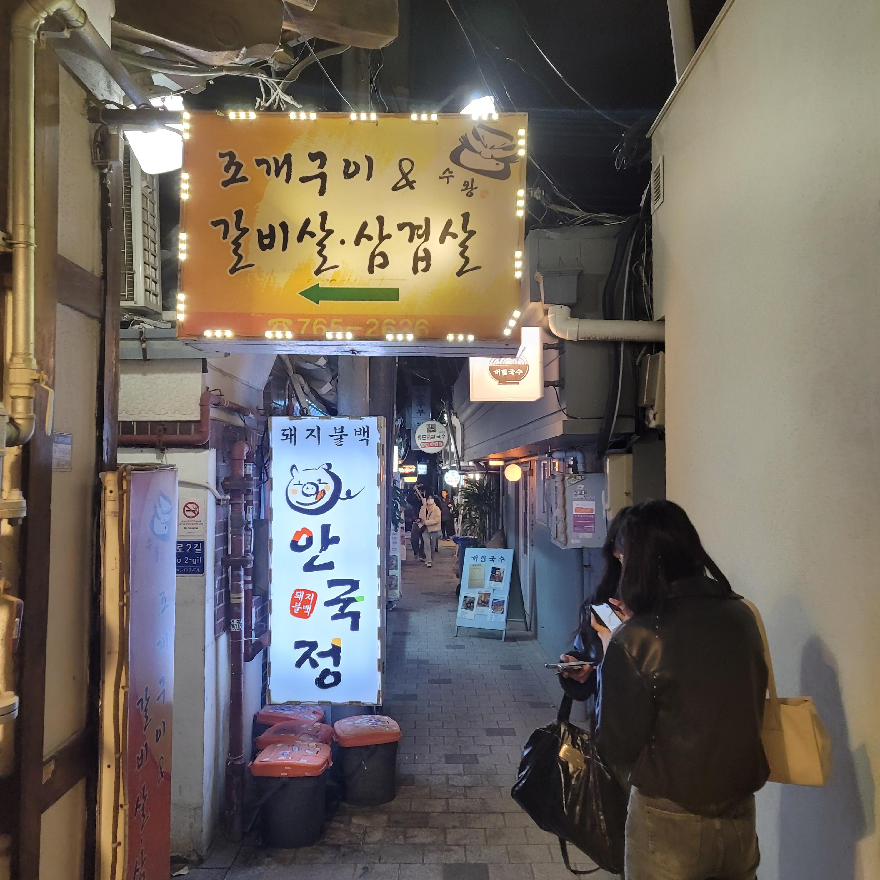 골목을 좀 더 걸어가다 보면 갈매기살 집들이 나온다. 그 중에 대중한테 가장 유명한 곳 중 하나인 광주집. 밤 되면 여기도 끝장난다.