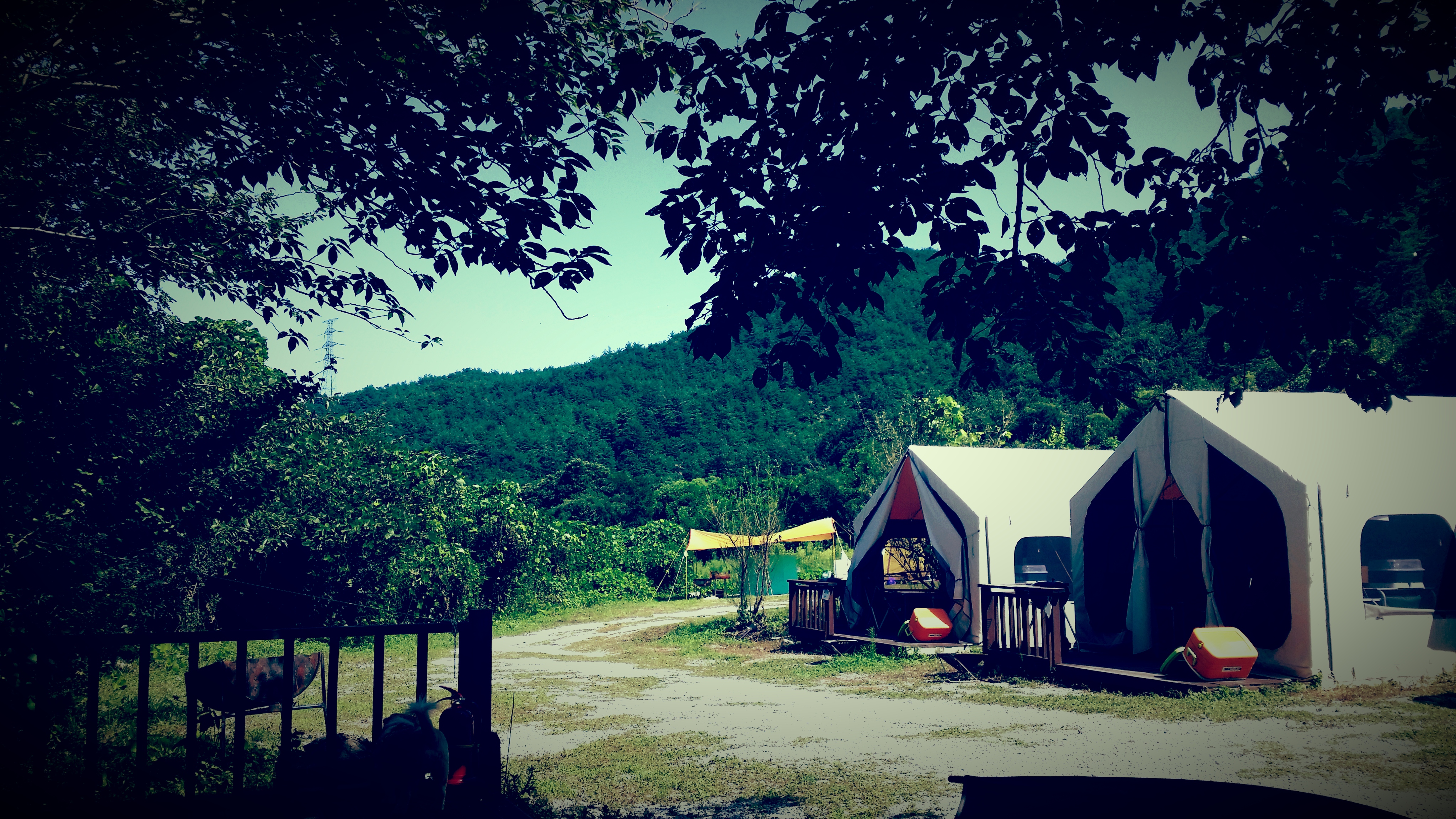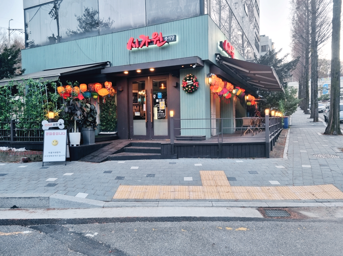 비닐막 사이로 들어온 공간. 사진엔 안 보이지만 안 쪽에 Bar 공간이 하나 더 자리 잡고 있다. 밤이 되면 그래도 분위기가 좋아진다