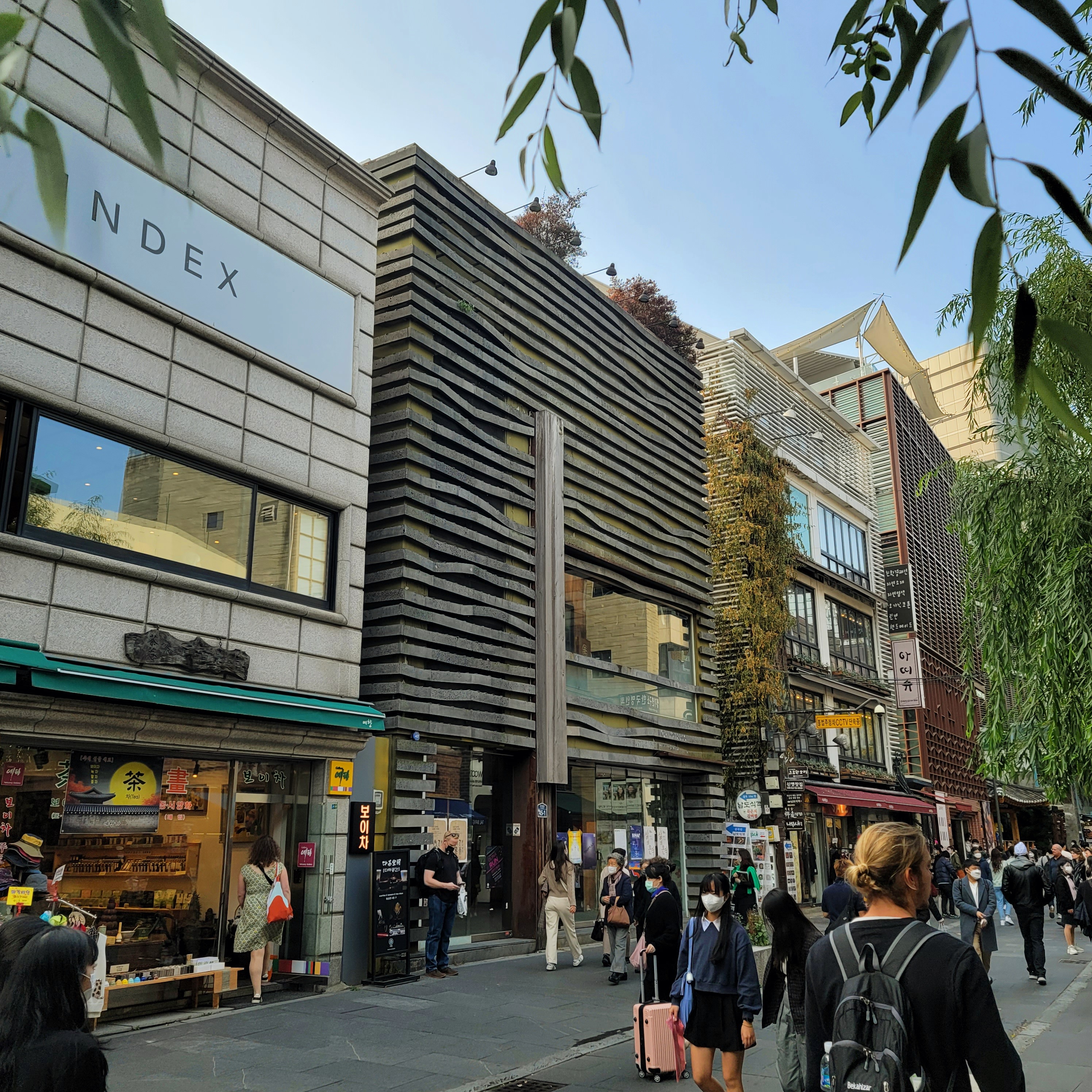 추억의 쌈지길. 밀레니엄이 갓 지난 2000년 초반에 등장해 엄청난 반향을 일으켰던 공간이었다. 한 번 들어가면 그냥 쭉쭉쭉 출구까지 이어질 수밖에 없는 일방통행의 길, 하지만 입구부터 출구까지 재미있는 경험을 선사해 준 곳. 좀 레벨을 낮추어 비교해 보자면 일방통행 공간은 이케아 매장 같은 느낌으로 보면 될 듯하다. 그리고 인사동 하면 언제나 어느 곳에나 숨을 돌리면 보이는 듯한 버드 나무 (버드나무 맞나? ㅜㅜ 진짜 나무 이름은 잘 몰라서...) 암튼 쌈지길은 그 시절 정말 재미있는 신개념 골목길이었다
