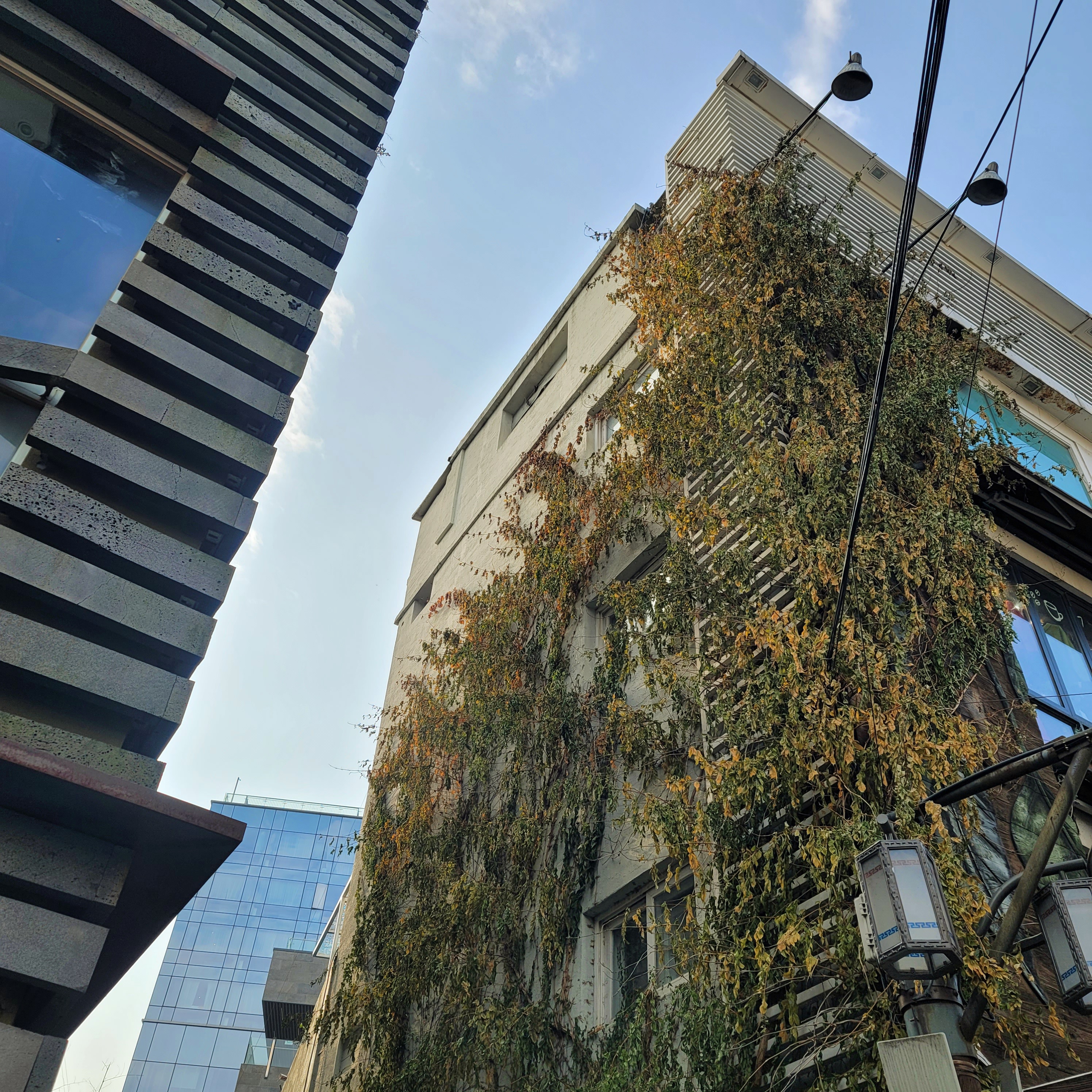 인사동 쪽으로 길을 돌리며 나무들이 같이 하고 있는 듯한 건물이 보인다. 인상적이다