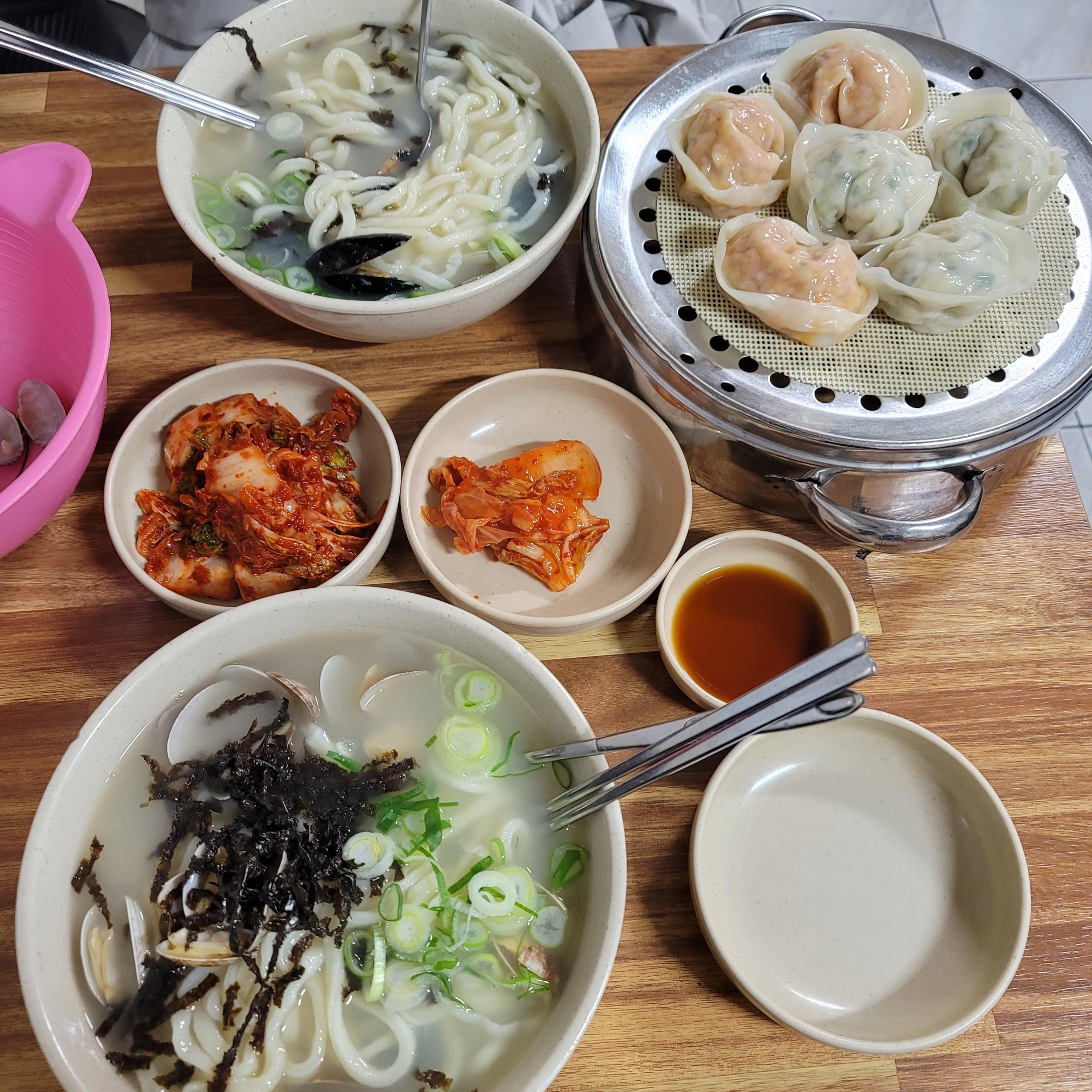 찬양집 처음 방문했을 때 신선했던 기억은 바로 저 김치다. 저런 손 칼국수 면발이야 종로부터 청계천까지 흔하게 접할 수 있었던 것이었는데 여기는 김치가 두 가지, 신 것과 익은 것.. 이렇게 나눠서 주는 게 굉장히 인상적이었고 거의 이 집 밖에 없었던 것 같다. 이 날은 만두도 시켜 봤다. 맛있다