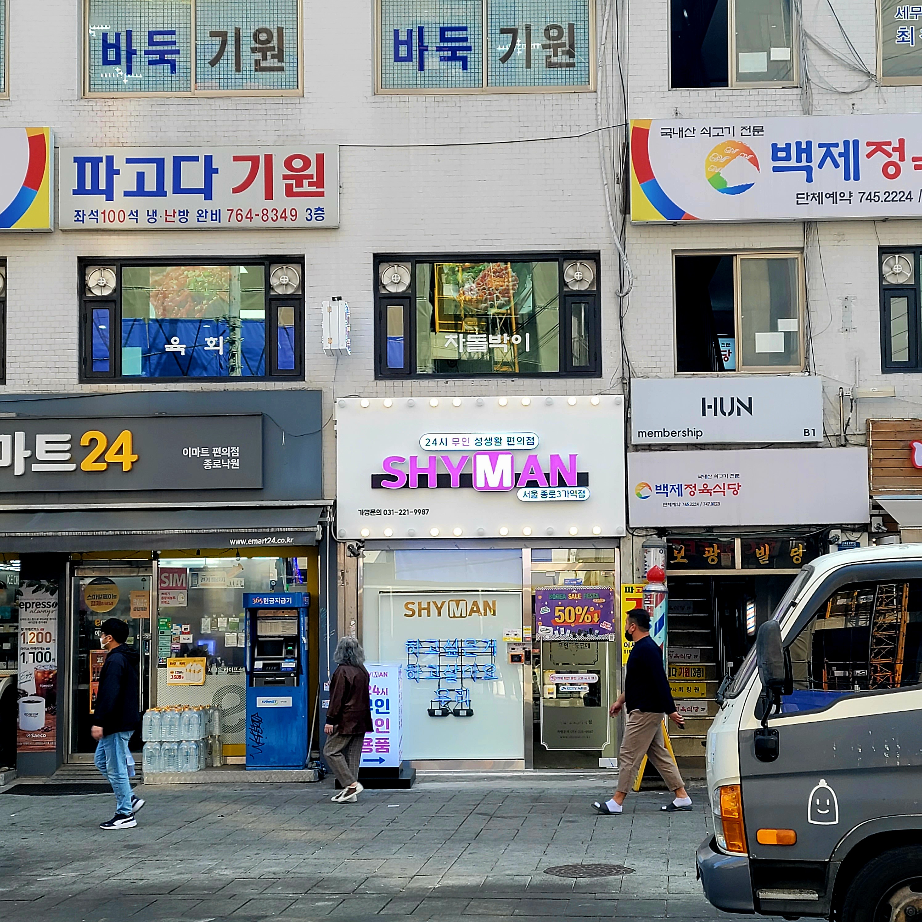 요즘은 성인용품가게도 떳떳하게 사람들이 넘치는 거리에 위치하고 있다는데 하나 발견했다. 샤이맨... 요즘엔 저런 곳에 들어가는 것도 사람들 눈 개의 치 않고 데이트 중간에도 간다고 (인터넷에서 들었는데 말입니다) 하는데 아주 좋은 현상인 것 같다. 언제까지 유교걸, 유교뽀이 하고 있을 것인가. 어서들 많이들 결혼하고 애 낳고 출산율을 높입시지 말입니다