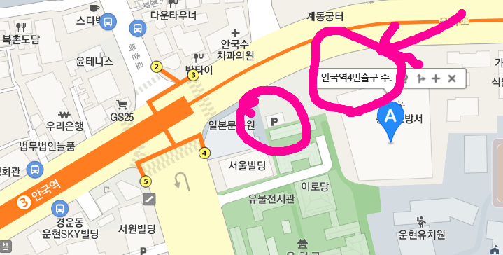이 끝까지 와서 안국 빌딩 기점으로 동영상 모드로 360도 돌려 봄
