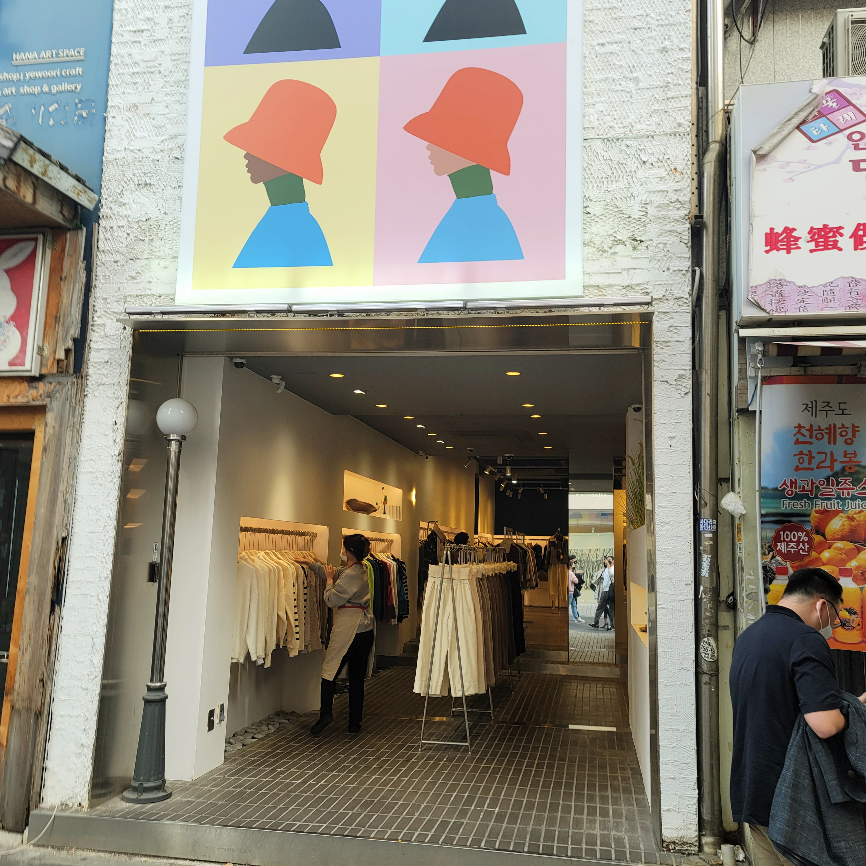 와 중에 모던한 느낌의 옷가게가 있어 찍어 보았다. 모던한 느낌의 간판과 90년대 느낌의 시멘트 바닥의 조화가 잘 어울리는 것 같다
