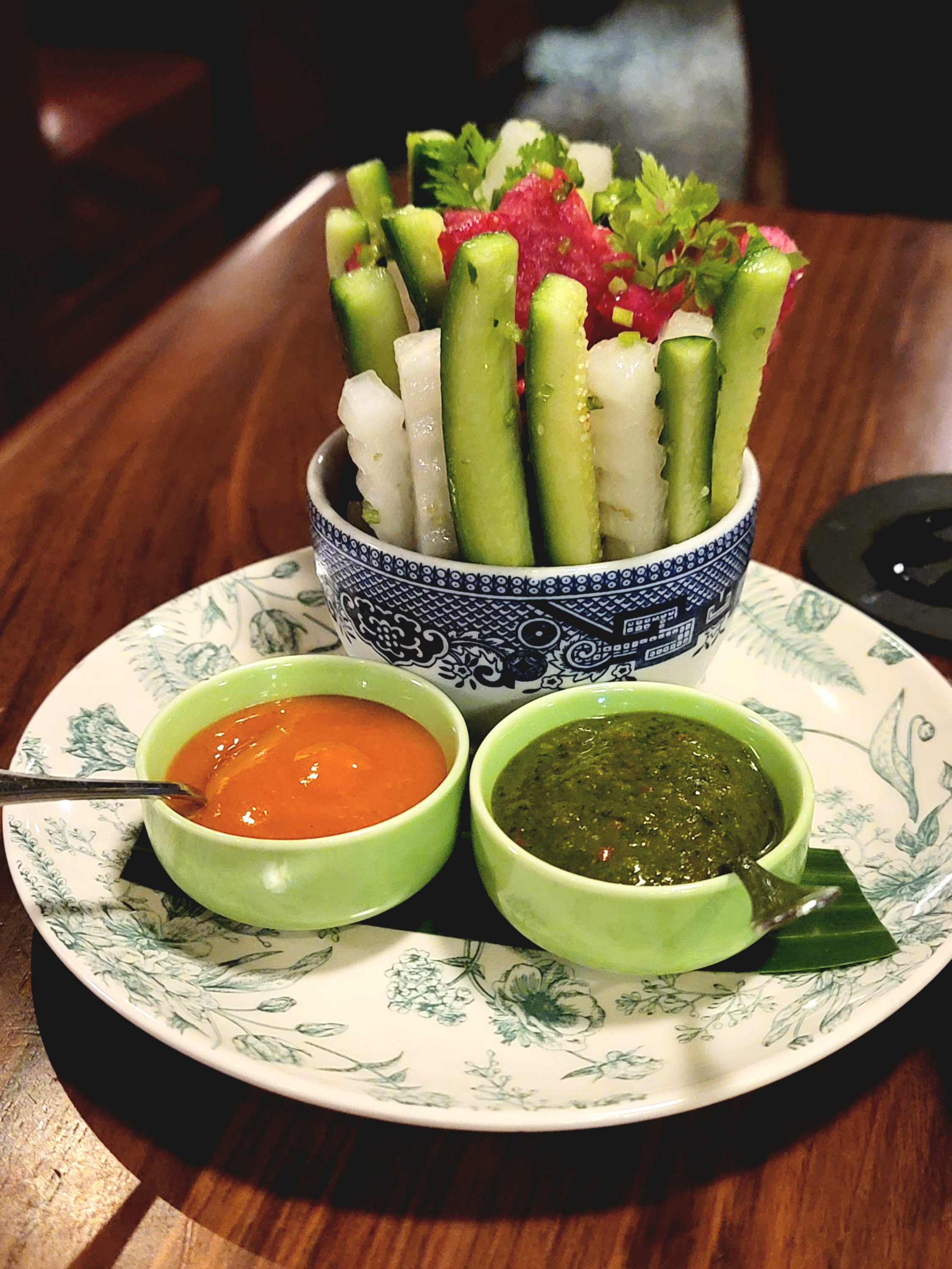 Hara Salad, 기름진 음식들 사이에서 입안을 싹 정화해 주는 역할. 절여 나온 채소에 구아바 소스, 칠리소스를 곁들이는 스타일인데 보기에도 예쁘고 의외로 많이 손이 간다.