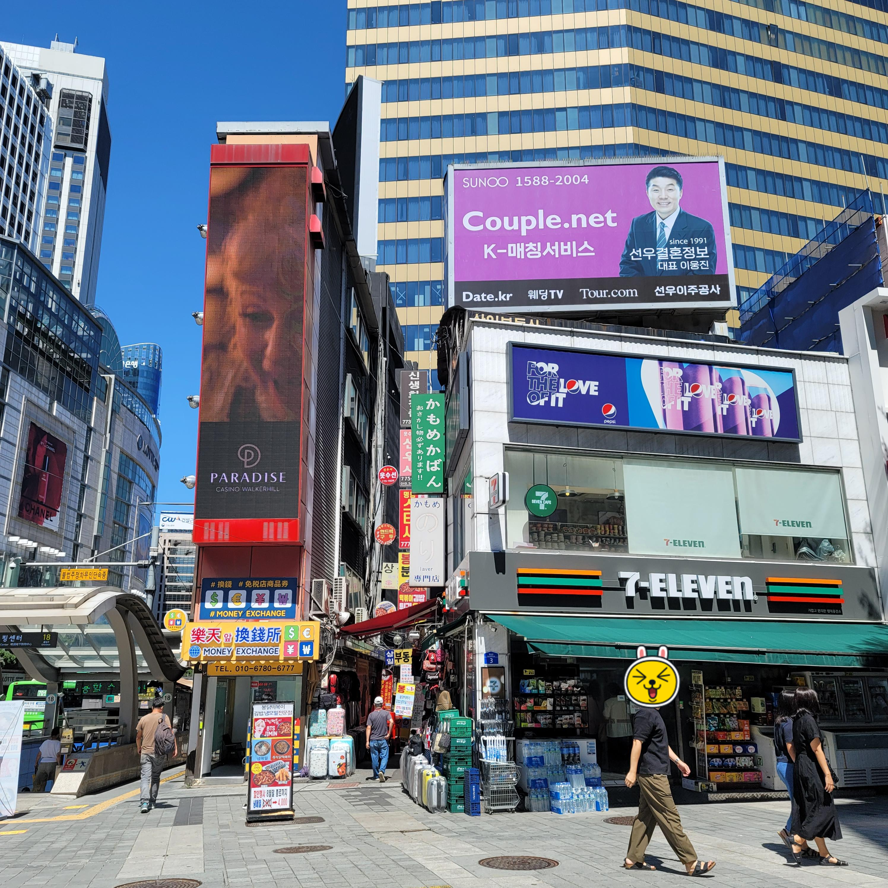 암튼 다시 지하를 나와 명동 메인으로 올라간다. 추억은 많이 사라졌지만 신축 건물의 웅장함이 그것을 대신하고 있다. 좋은 것일까? 좋긴 좋다. 근데 100% 좋은 것이고 옳은 방향일까...