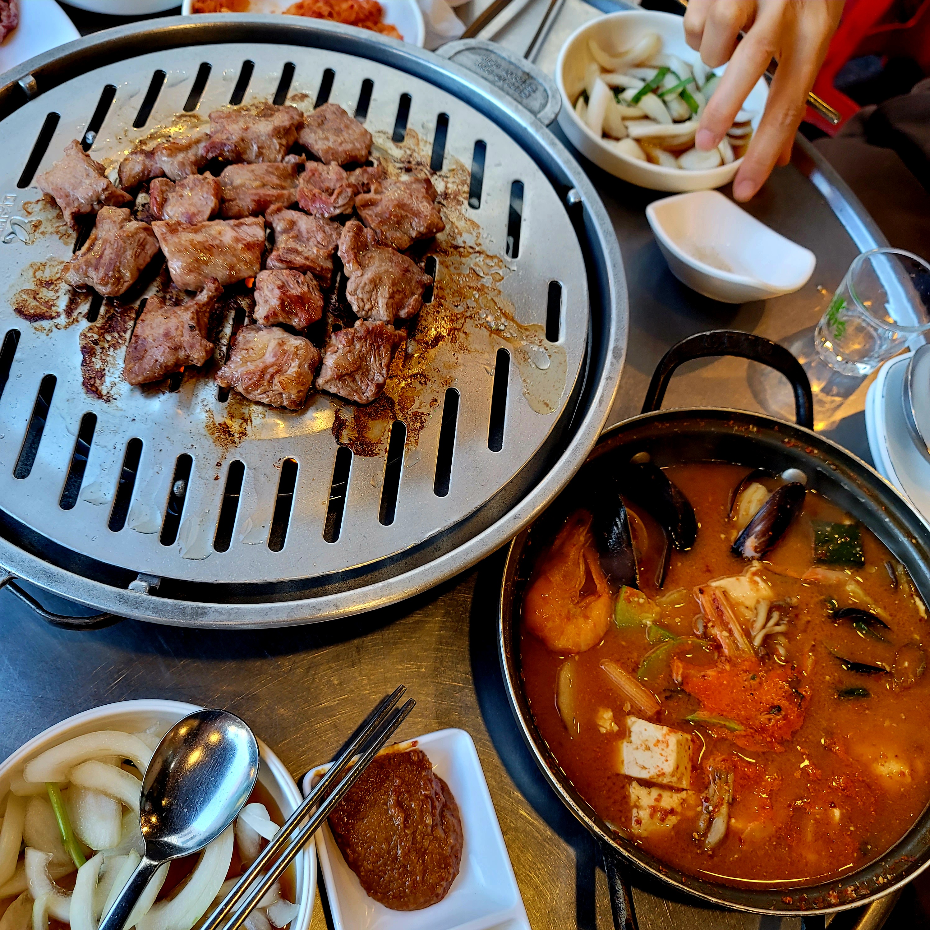 갈매기살을 시켰다. 봉래동 자루가 문 닫아서 어쩌지 하면서 정신없이 온 곳이라 나중에는 아, 마포나 종로를 갈 걸 한 생각이 번쩍 들었는데, 여기도 나름 노상과 갈치조림보단 약간 덜 짠 ㅋ 해물된장과 함께 하는 갈매기 살도 괜찮았다. 맛있게 먹었다