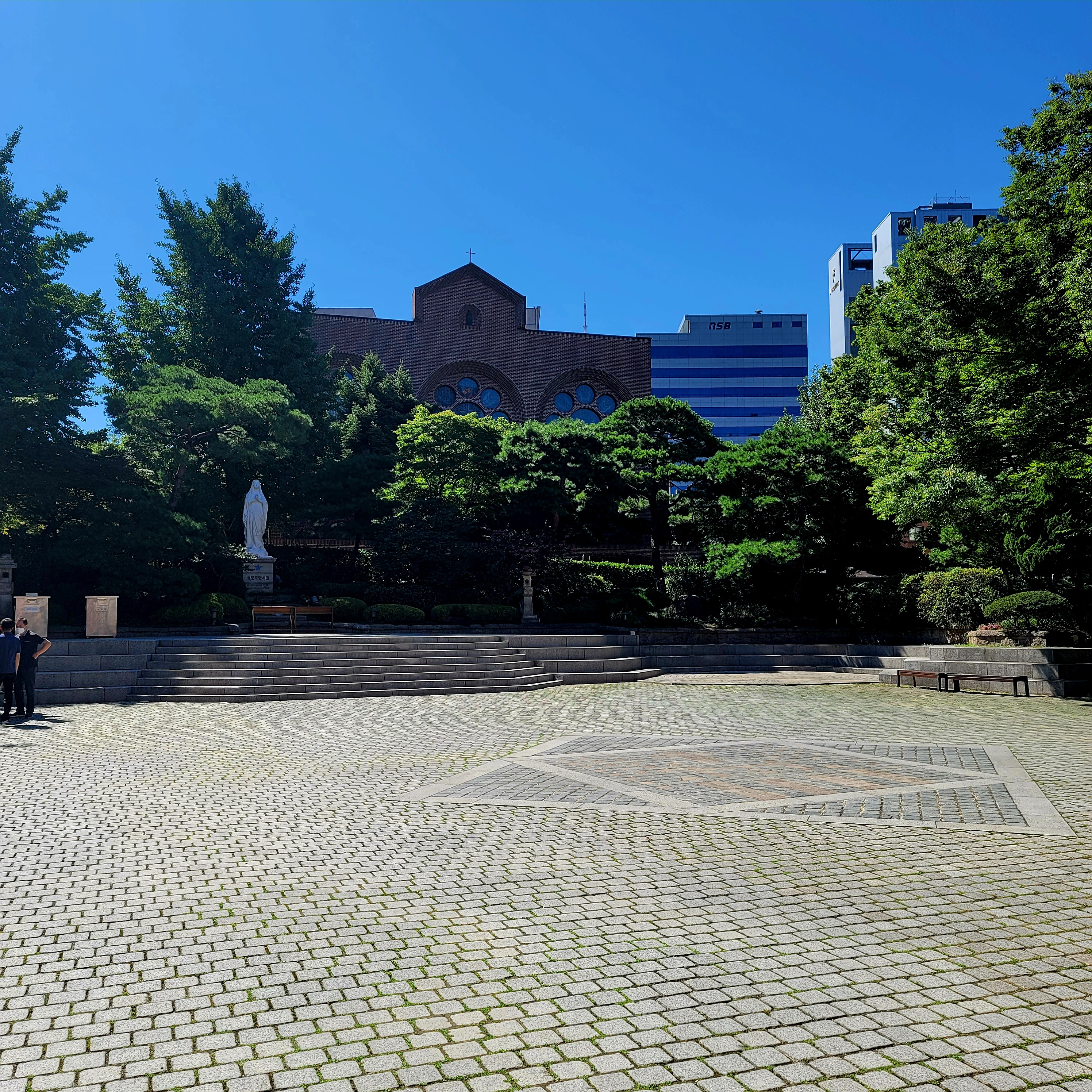 계성여고를 우로 하고 조금만 들어가면 명동성당 바로 뒷 편의 샛별동산이다. 옛 계성초교 학생들의 각종 행사 사진을 찍거나 방과 후 놀이를 하던 공간이기도 하다. 뒤에 그 유명한 샬트르 성바로오 수녀회 서울관구 수녀원의 장미 상징 전경창이 보인다. 계성초 레노베이션 건물을 설계했던 김원 건축가의 작품이다. 정원 또한 굉장히 아름다운 곳이다.