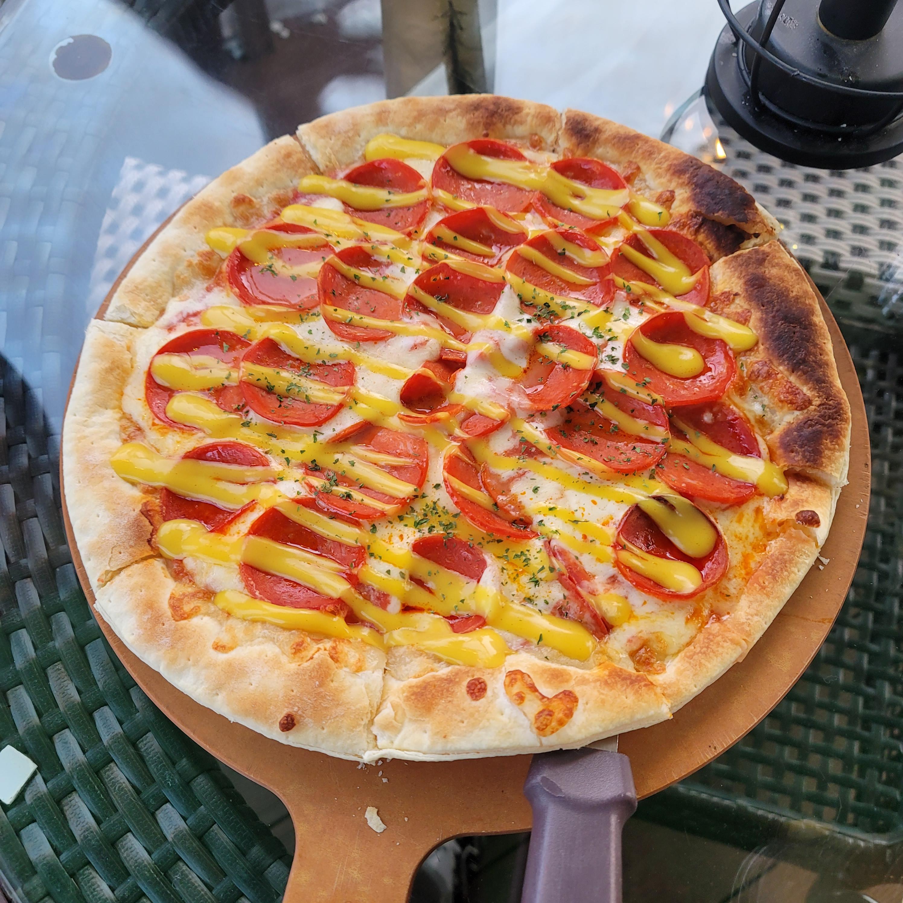 마땅히 먹고 싶은 게 없어서 페퍼로니 피자를 시켰는데 이렇게 생겼다. 맛은... 음... 내 입맛과는 안 맞았다...