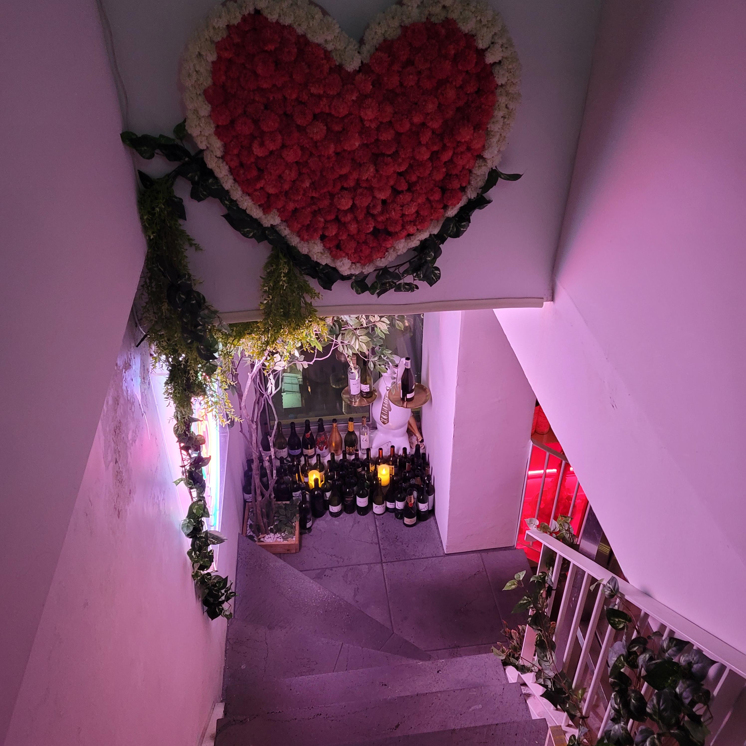 뭔가 인스타 느낌이 나는 장식의 라운지 로고 간판 장식이다 밤에 빛나면 예쁠 것 같다