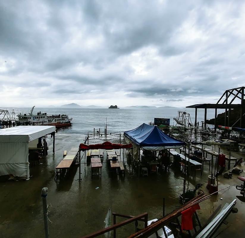 비옷을 입고 선착장을 내려가 서있으니 동네 할아버지가 높은 파도에 휩쓸려갈 수 있으니 어서 올라가라고 멀리서 외치며 손짓을 했다.