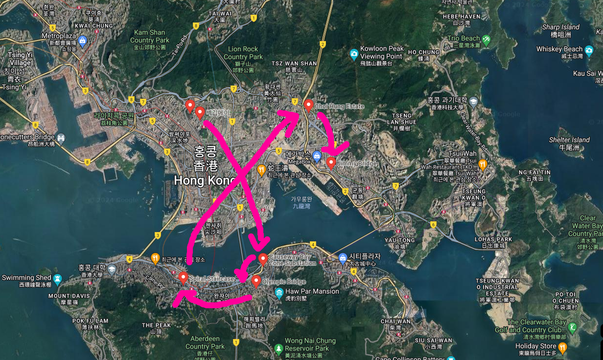 첫 장면과 마지막 장면은 너무 단서가 애매해서 찾지 못했지만 중간에 펼쳐지는 여러 홍콩의 스폿들을 랜선을 통해 찾을 수 있었다.
