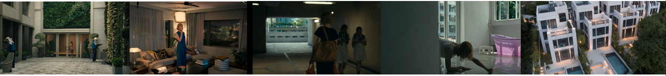 아파트의 외부, 그리고 내부 중 복도 신 까지는 비즈니 크레스트에서 찍은 것 같다. 하지만 내부는 미국 L.A.에 만든 스튜디오 세트다. 이렇게 까지 공들여 실제 인테리어 세트를 만든 것을 보면 뭔가 촬영 스태프들의 기준에 맞는 하우스 인테리어를 찾지 못한 것 같다. 스쳐가듯 읽은 기사에서 촬영 로케를 위해 방문한 홍콩 고급 주택지들의 인테리어들이 좀 올드해서 스튜디오 셋을 진행했다는 인터뷰가 얼핏 기억난다. 그들이 생각한 2014년 홍콩 상류층의 공간의 감성이 무엇일지는 이 세트 안에 표현한 것 같다. 사실 2014년의 홍콩은 잘 모르기 때문에 공감은 잘 못하겠다.