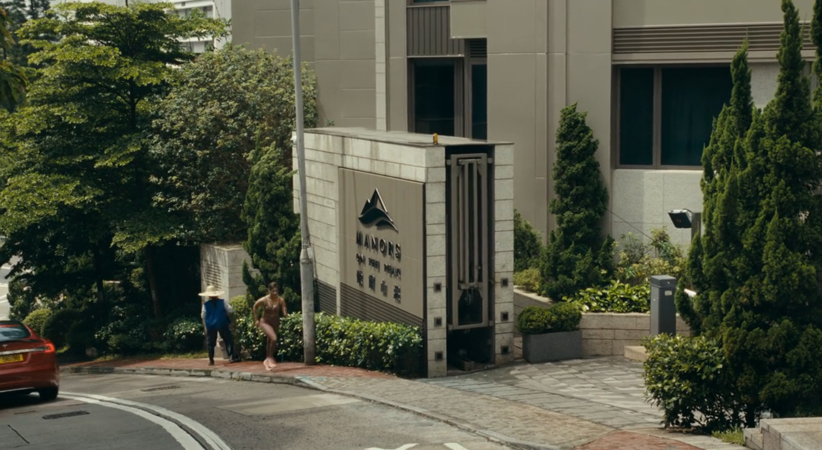 이 곳은 홍콩섬 서 쪽 샌디베이의 비즈니 크레스트 Bisney Crest라는 곳이다. 극 중 간판은 책과 같이 'Manors', 그리고 소유주인 'Chinachemp Group'의 로고도 볼 수 있다. 아마 오프닝의 조깅신은 홍콩 도심이 보이는 더 피크 쪽에서 찍은 것 같고 요 올라오는 신부터 이 비즈니 크레스트 지역에서 찍은 것으로 추정된다.