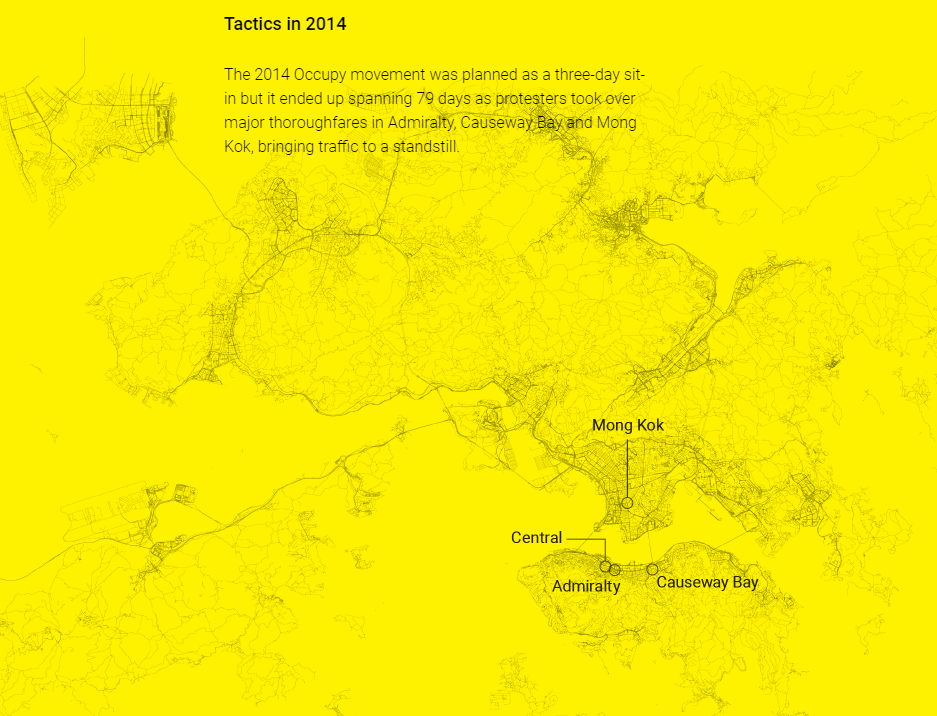 아마도 극 중 배경으로 자주 나오는 2014년의 홍콩 우산혁명과 이야기의 동선을 맞추고 싶었었기 때문일거다. 당시 주요 시위 지점들인 몽콕, 센트럴, 어드미럴티, 코즈웨이베이를 봐도 시리즈에서 서사가 펼쳐지는 공간들과 크게 벗어나지는 않는다.
