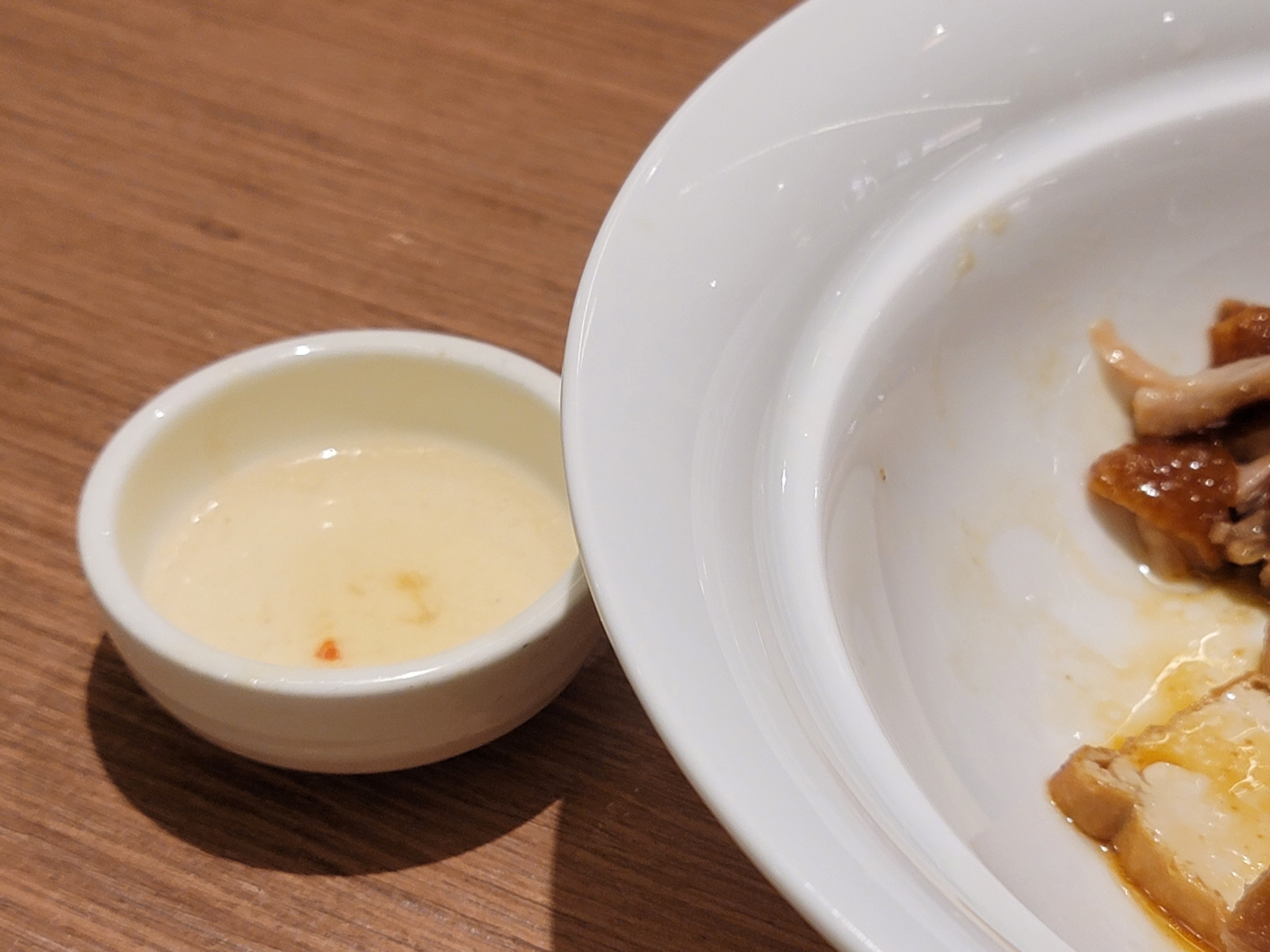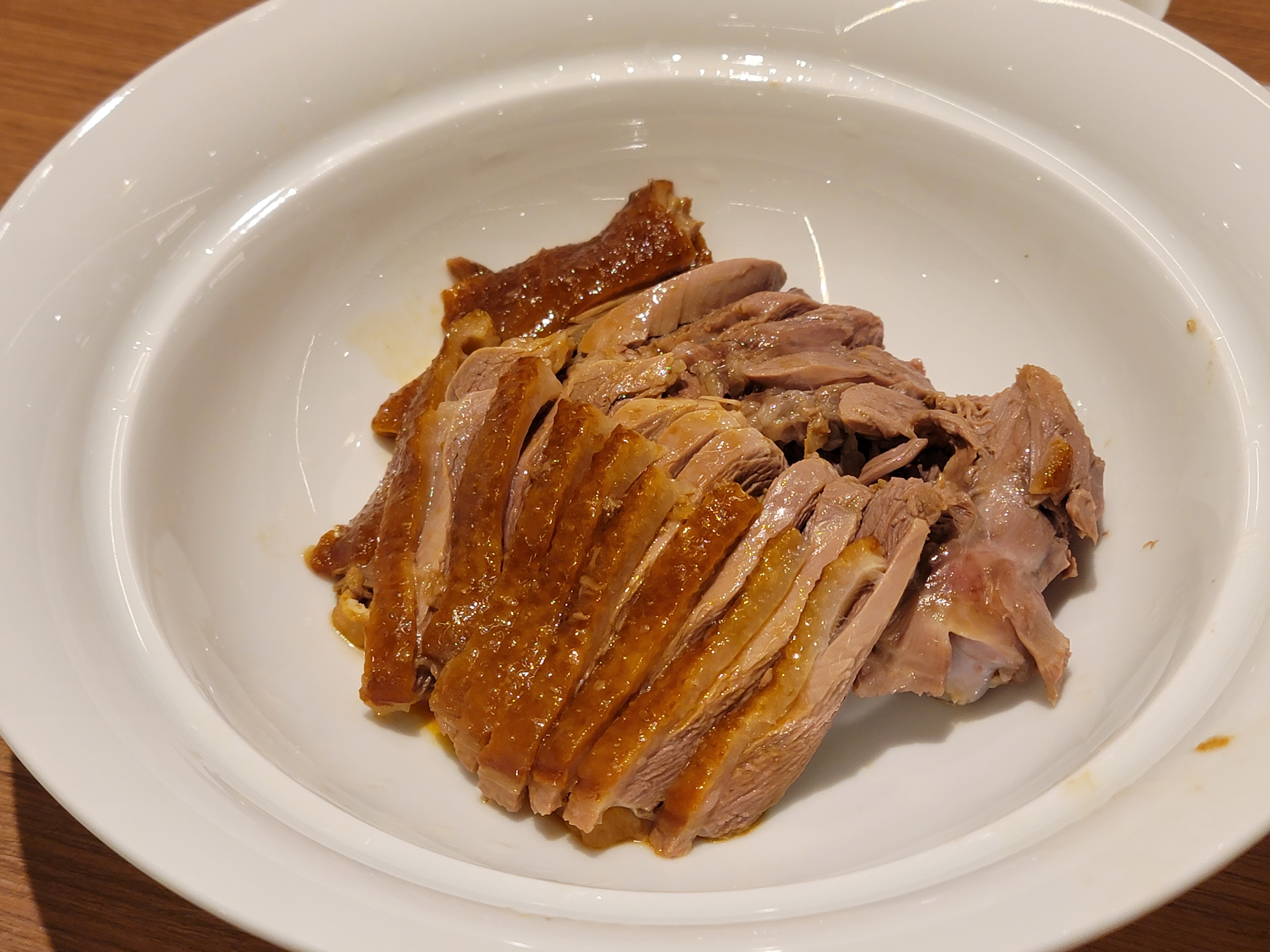 정확한 이름은 모르겠는데 식초 베이스의 저 산미가 풍부한 소스와 찍어 먹으면 기름진 거위의 풍미를 느끼하지 않고 오히려 풍미를 더해주는 판타스틱한 맛이 난다. 특히 상부라 그런지 거위목도 나왔는데 뜯어먹는게 그 식감이 감히 치킨 목살 뜯어 먹는 것과는 비교할 수가 없었다. 고기 밑에 두부도 같이 나오는데 부드러우니 어르신들 먹기도 좋고 맛이 좋다.