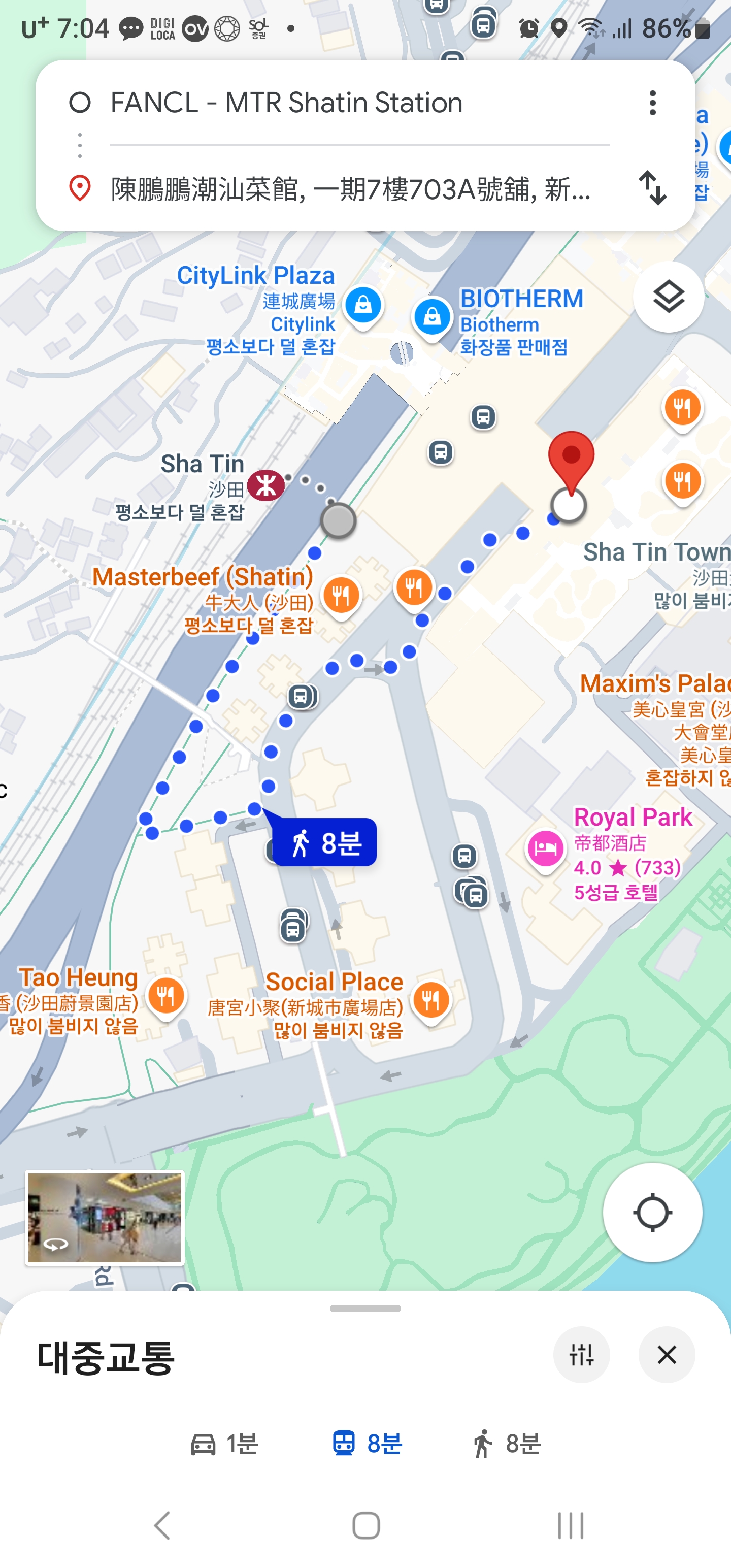 포스팅하는 지금 시점에서도 마찬가진데 샤틴역에서 구글 길 찾기를 찍으면 저렇게 밑으로 쭈욱~ 8분 도보로 돌아가라고 나올 것이다. 하지만,