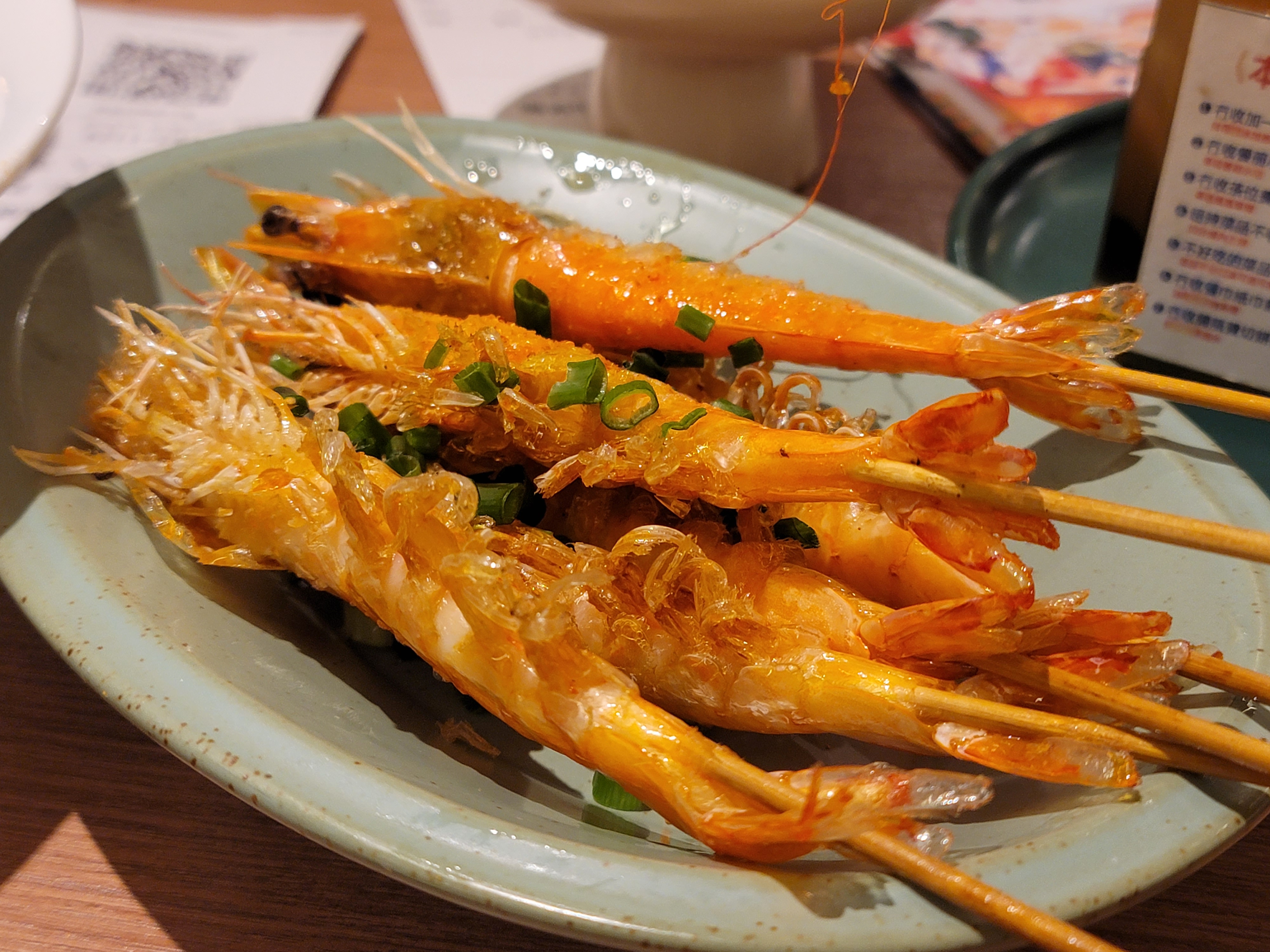 이어 나온 小吳烤蝦 소이 구이 새우. 코코넛과 함께 구운 거라고 하는데 생각보다 짜지도 않았고, 이미지에서 보듯 쫄깃하고 바삭한 식감이 좋았다. 일본 식 꼬치와는 또 다른 중국식 꼬치의 맛깔스러움.