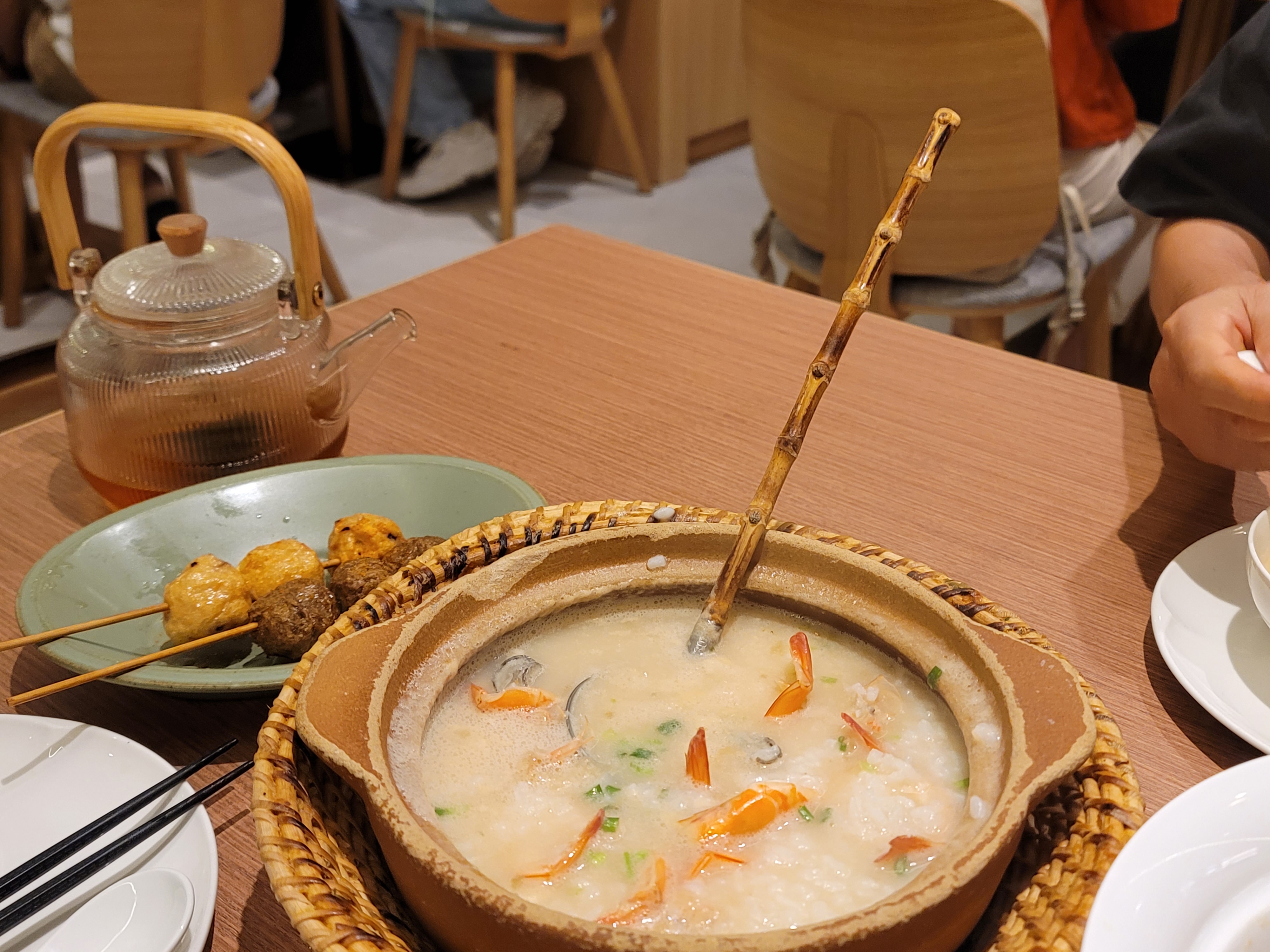다음은 또 하나의 시그니쳐이자 부모님의 페이버릿, 여긴 이거 먹으러 오신다는, 나무 국자가 인상적인 '조산식 해산물 사골죽 (潮汕砂鍋粥)'이다. 죽이다 보니 나이가 많은 어르신들한테도 부대끼지 않는 소화는 물론 맛까지 모두 커버해 줄 수 있는 기특한 맛이다. 부모님 원픽이라 2인분 시킴. 새우, 바지락, 바닷가재, 게, 굴 등이 들어간 죽인데 굴 맛에 따라 비리게 느낄 수도 있다. 저건 날에 따라 호불호가 있는 듯하다.