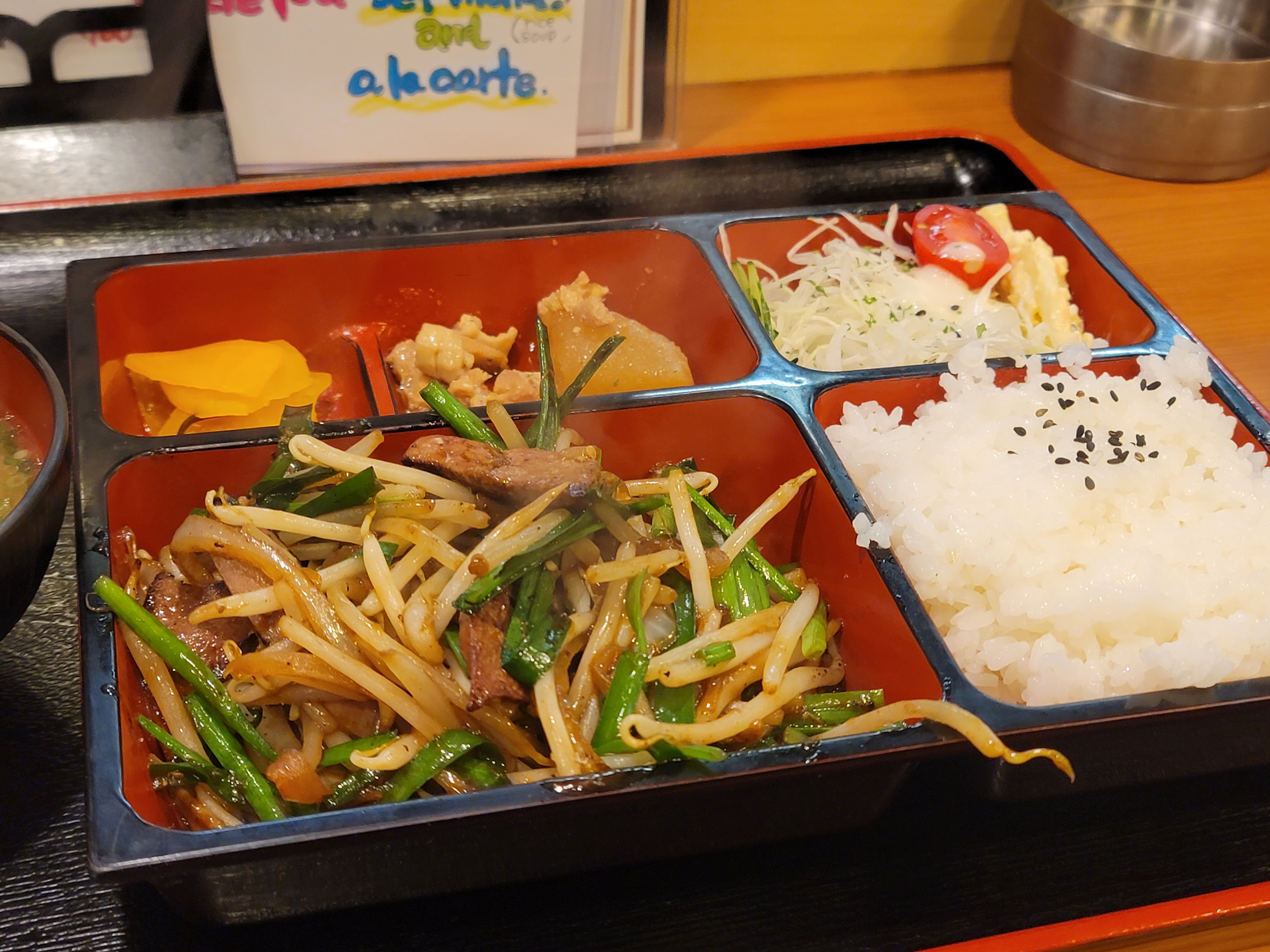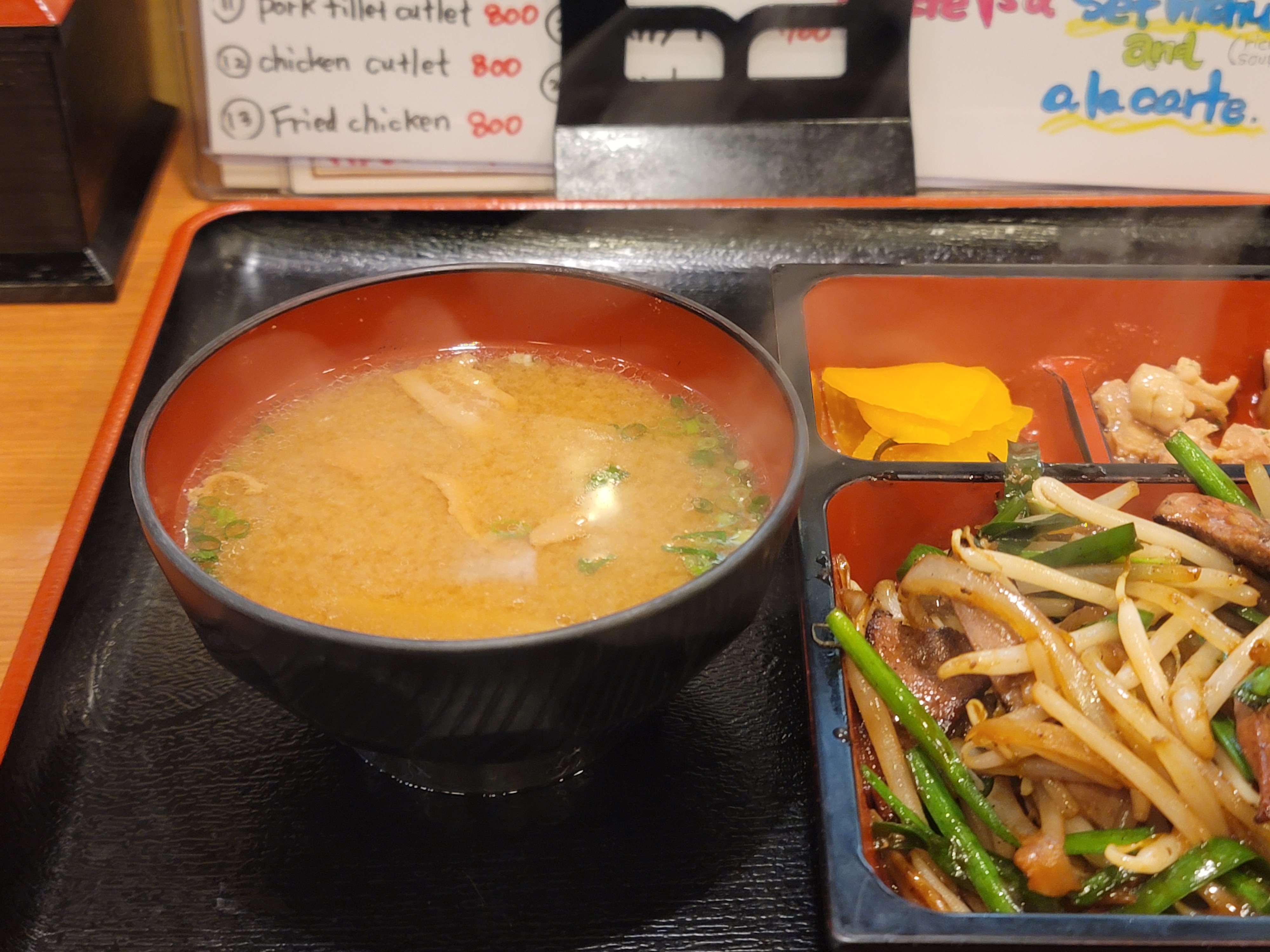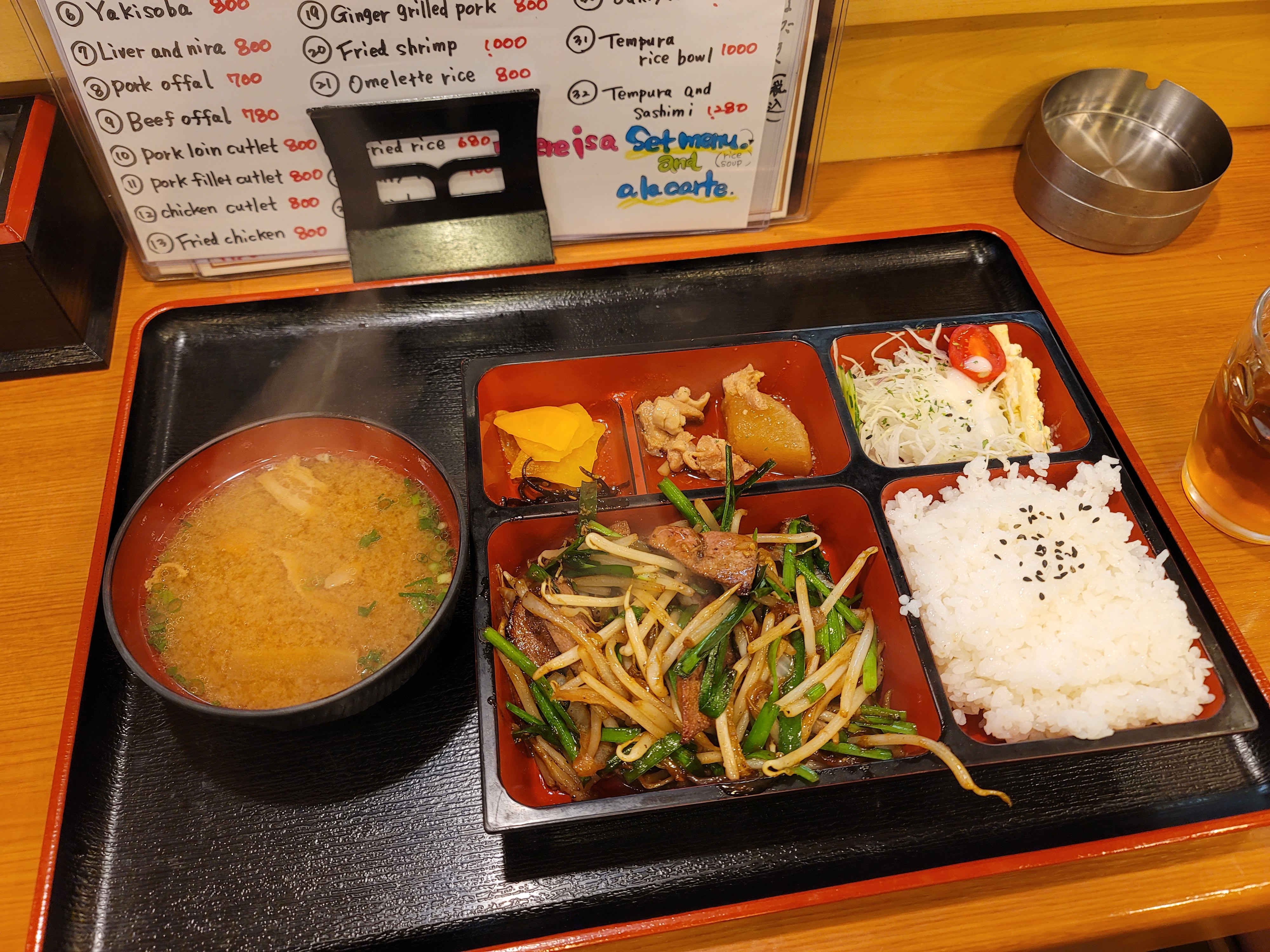 암튼, 순간 헷갈려서 "니바레라"라고 주문했더니 바로 알아듣고 "레바니라, 네?" 하고 되묻는다. (레바니라, 니라레바… 같은 의미이니, 내가 ‘니바레라’라고 해도 바로 알아듣는 듯 ㅋ) 워낙 대중적인 메뉴다 보니 어떤 발음으로 말해도 금방 알아듣는 것 같다. 정식 세트를 추천해 주길래 그렇게 주문했다. 단품들이랑 정식은 한 100~200엔 차이 정도로 예상된다.