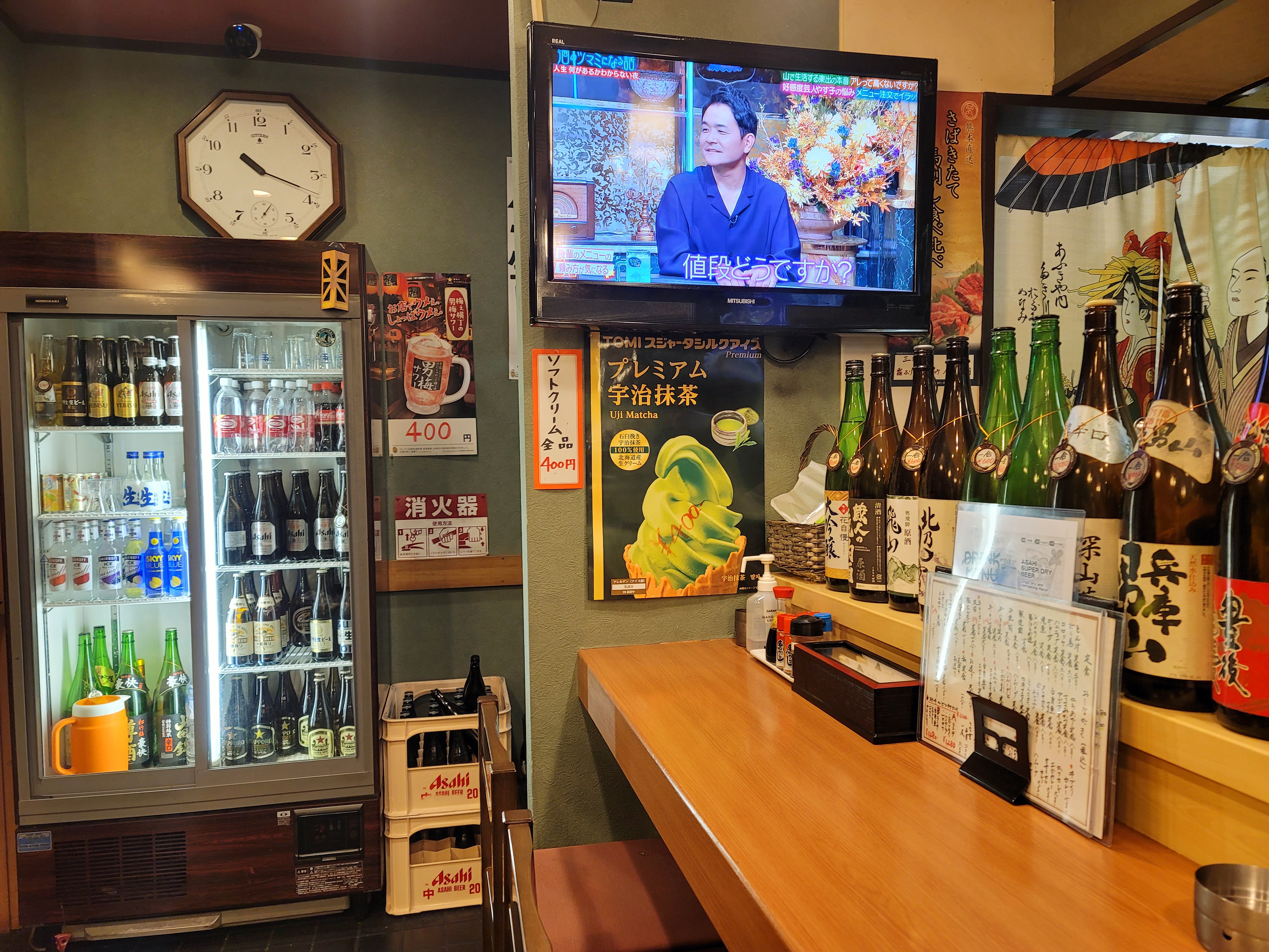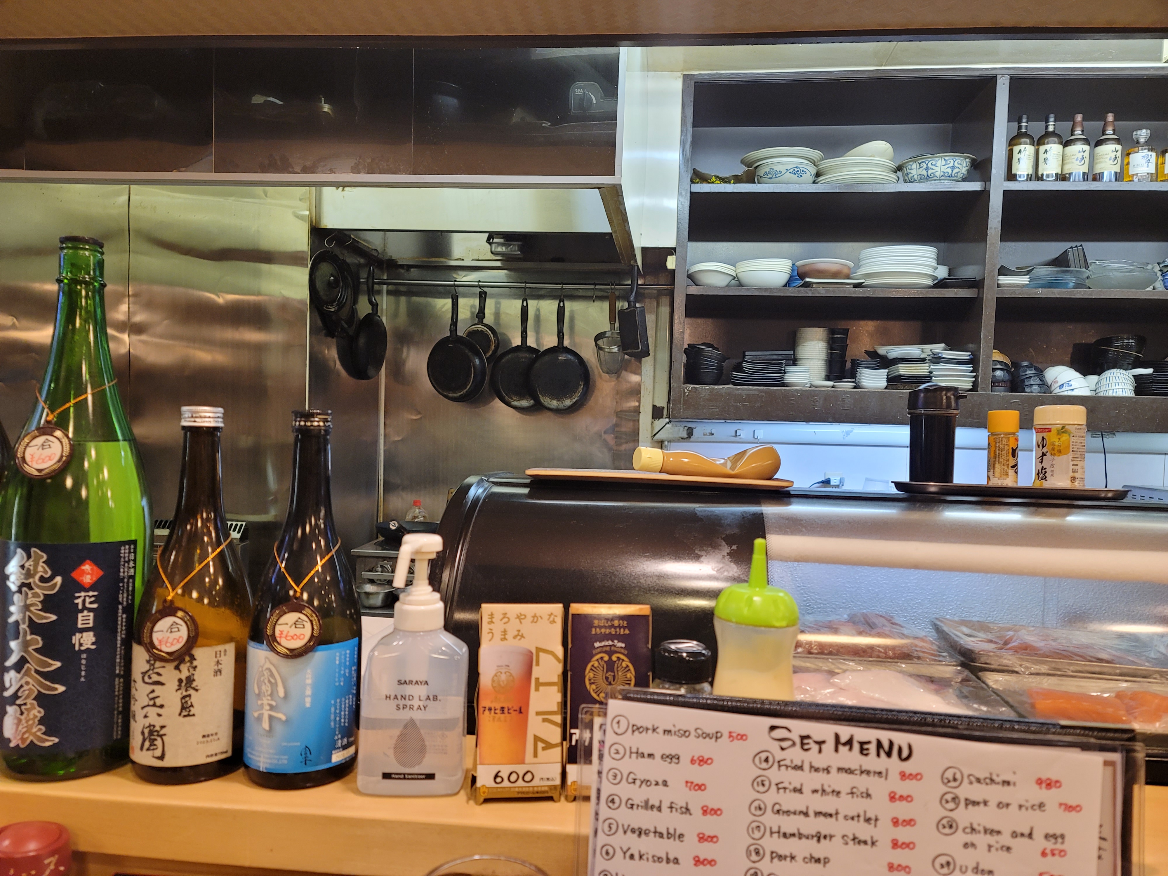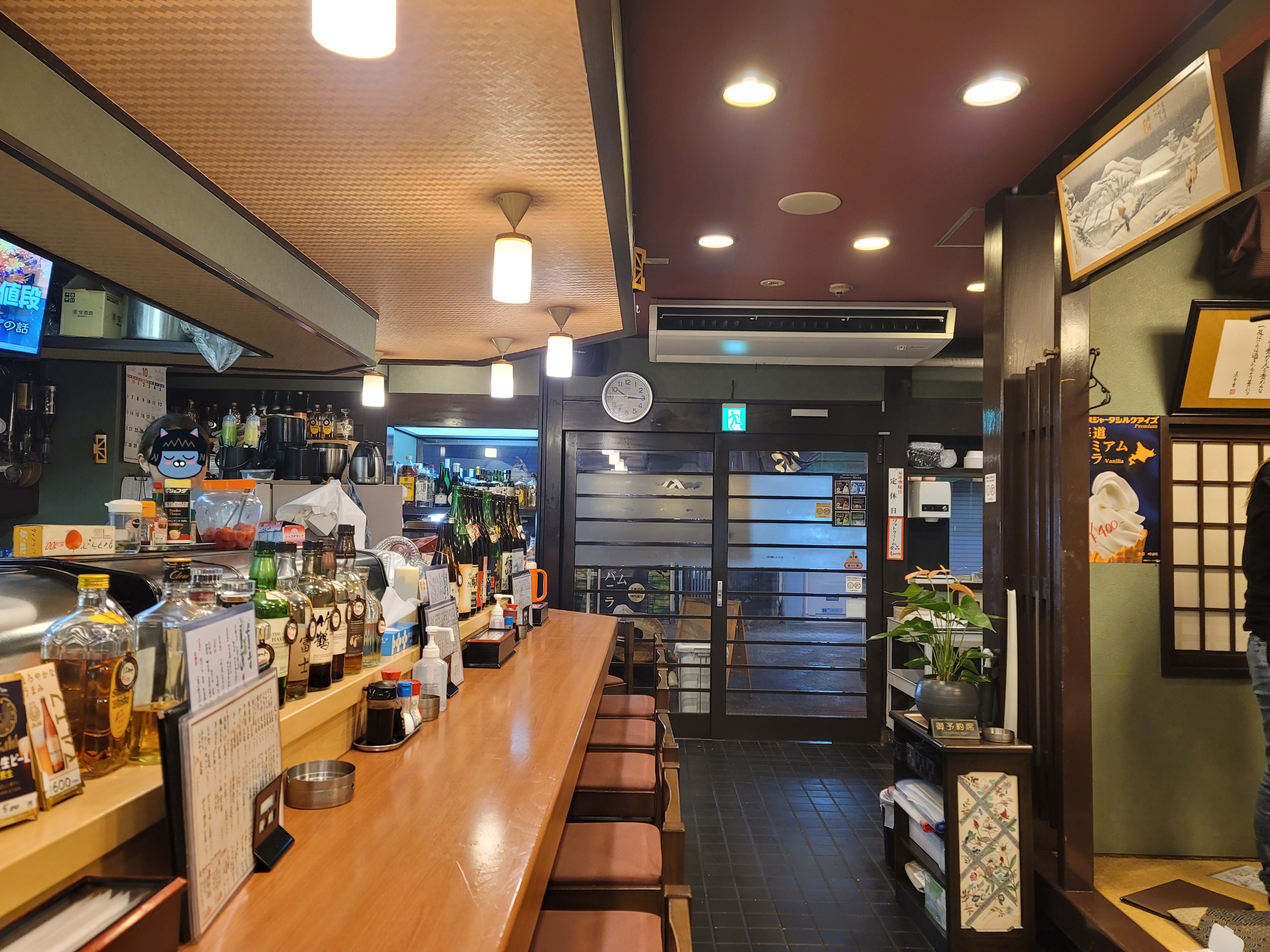 문 열고 들어가니 한국에서도 느낄 수 있는 카운터와 문 없이 트인 좌식 자리로 구성된 매우 익숙한 구조와 느낌의 이자카야 같은 공간이다. 굉장히 깔끔했다. 전혀 슬럼가 근처의 식당처럼 느껴지지 않는다. 이 지역에 묵게 되어 깔끔한 곳이 가고 싶다면 좋은 선택일 것 같다.