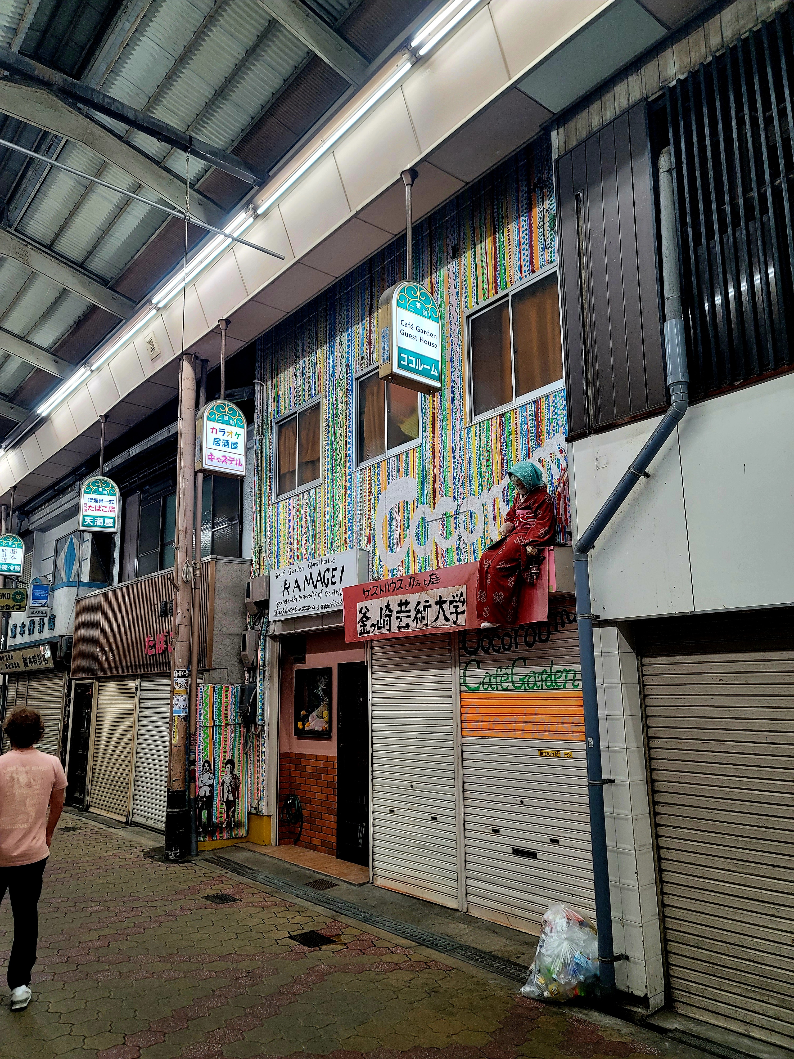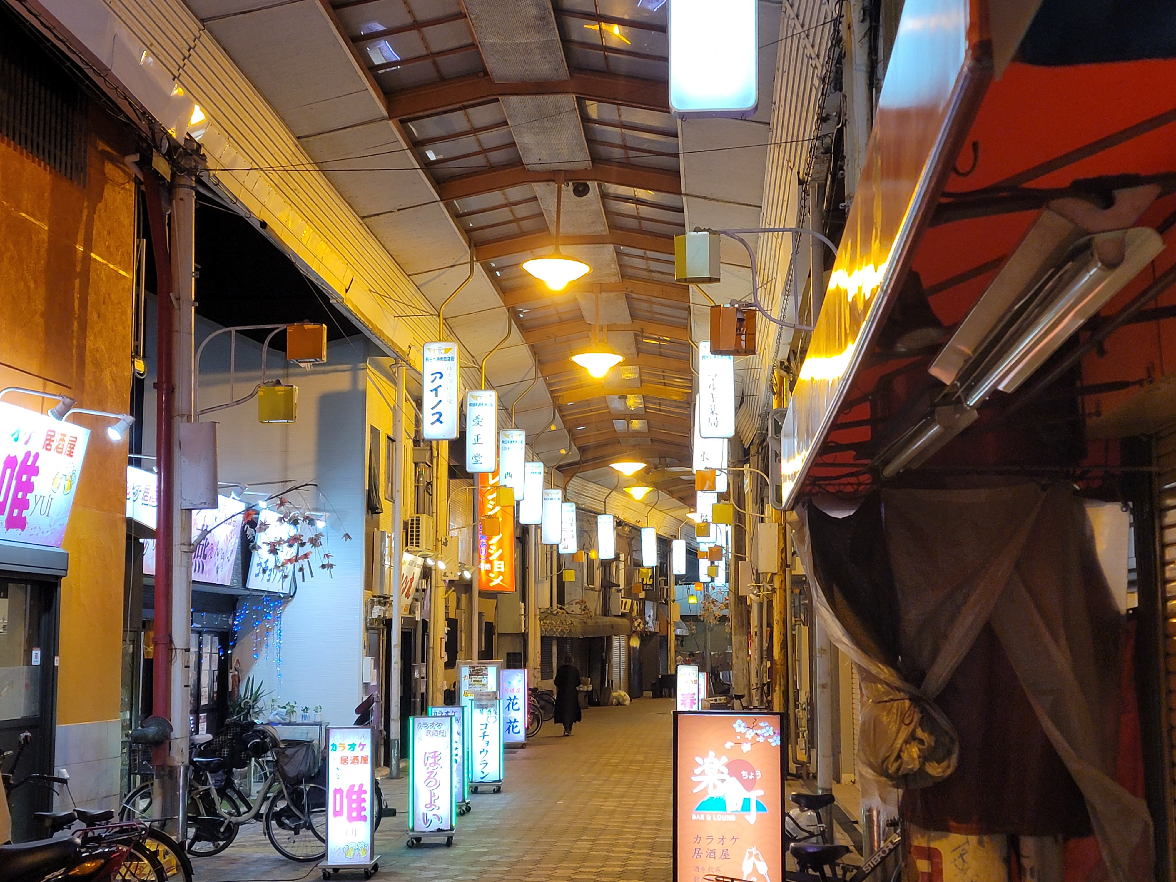숙소가 있는 도부츠엔마에상점가와 산노 시장으로 가는 길, 처음 접하는 분위기에 살짝 긴장감이 감돈다. 골목 곳곳에서 들려오는 가라오케 소리 덕분에 드디어 이곳에 도착했다는 현실감이 든다.