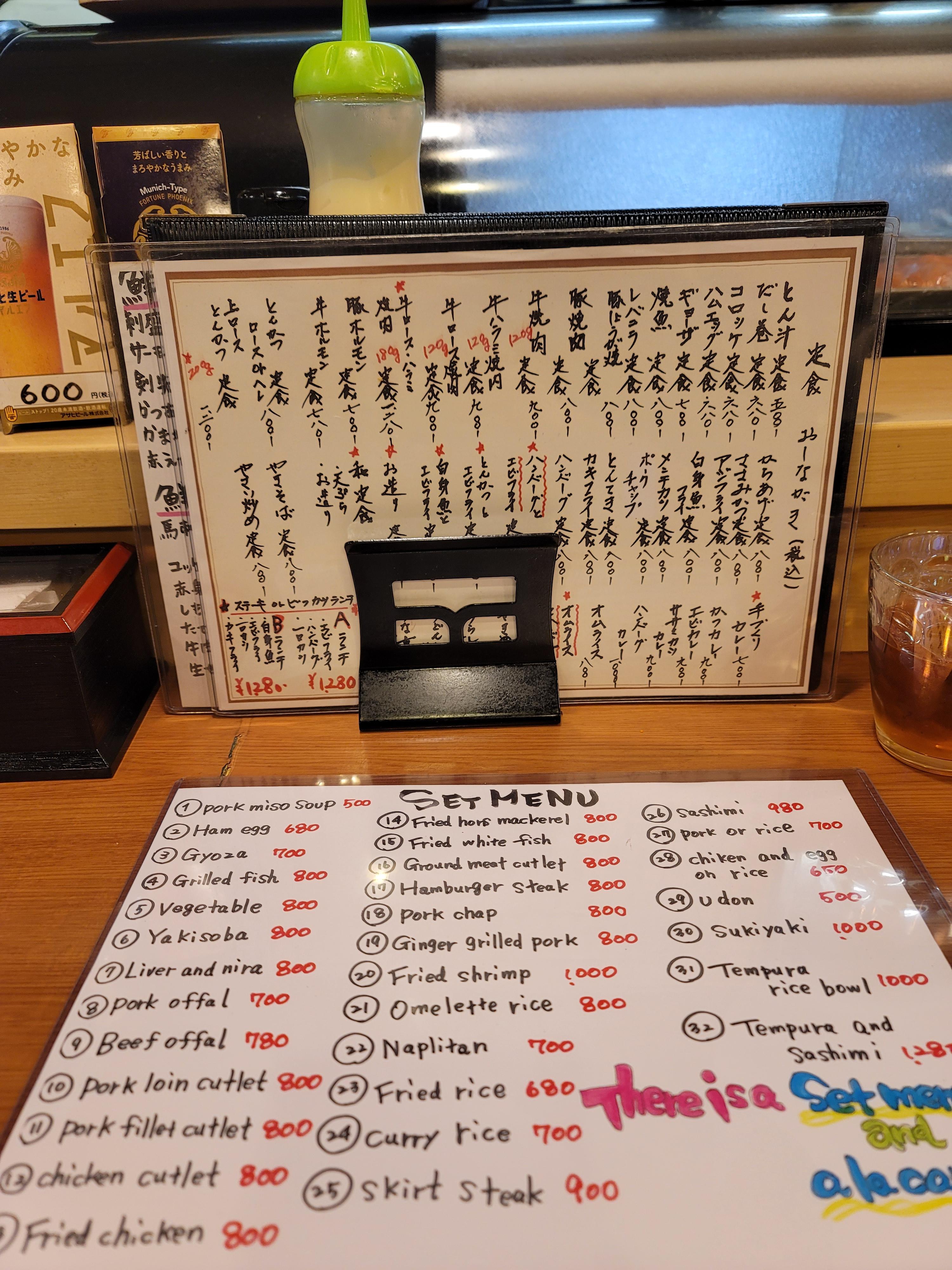 외국인들도 꽤 많이 돌아다니는 곳이라 그런지 영어 메뉴도 준비되어 있다. 대표 메뉴인 1번 돼지고기 된장국을 필두로 전반적으로 기본적이고 서민적인 일본 경양식과 가정식이 주를 이루는 느낌이다.