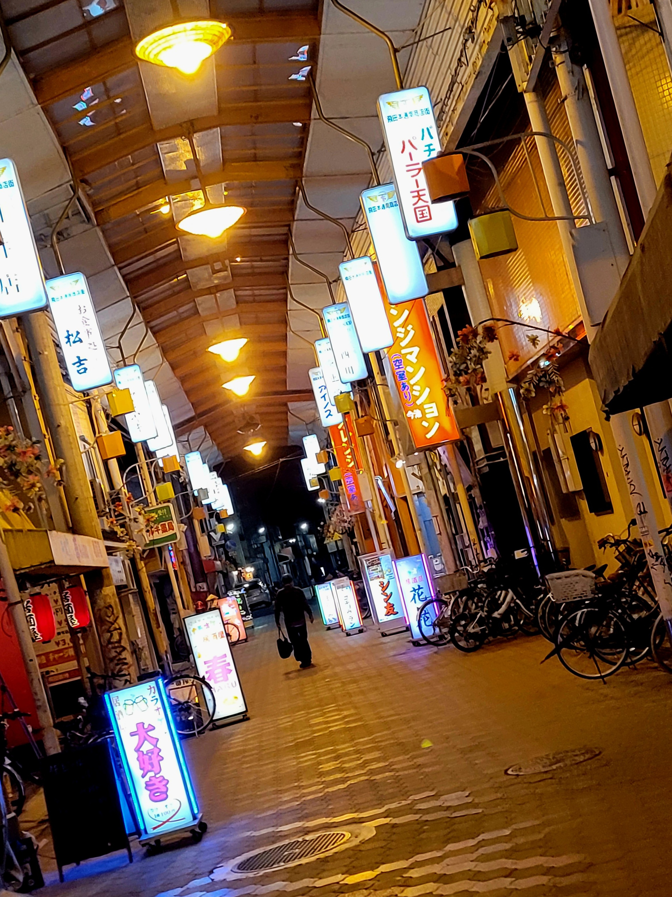 밥 먹고 숙소 가려니 애써 온 이 밤이 뭔가 아쉬워 이곳 아케이드 명물인 가라오케 바에 가보려고 했다. 시간이 너무 늦어 대부분 문을 닫았는데, 신이마미역에서 내려올 때 기억이 났던 카라오케 바가 하나 있어 그쪽으로 걸음을 옮겨 본다. 방문한 동네의 로컬 느낌을 느끼기에 외진 이자카야나 가라오케 바 같은 곳만큼 적절한 곳도 없다.