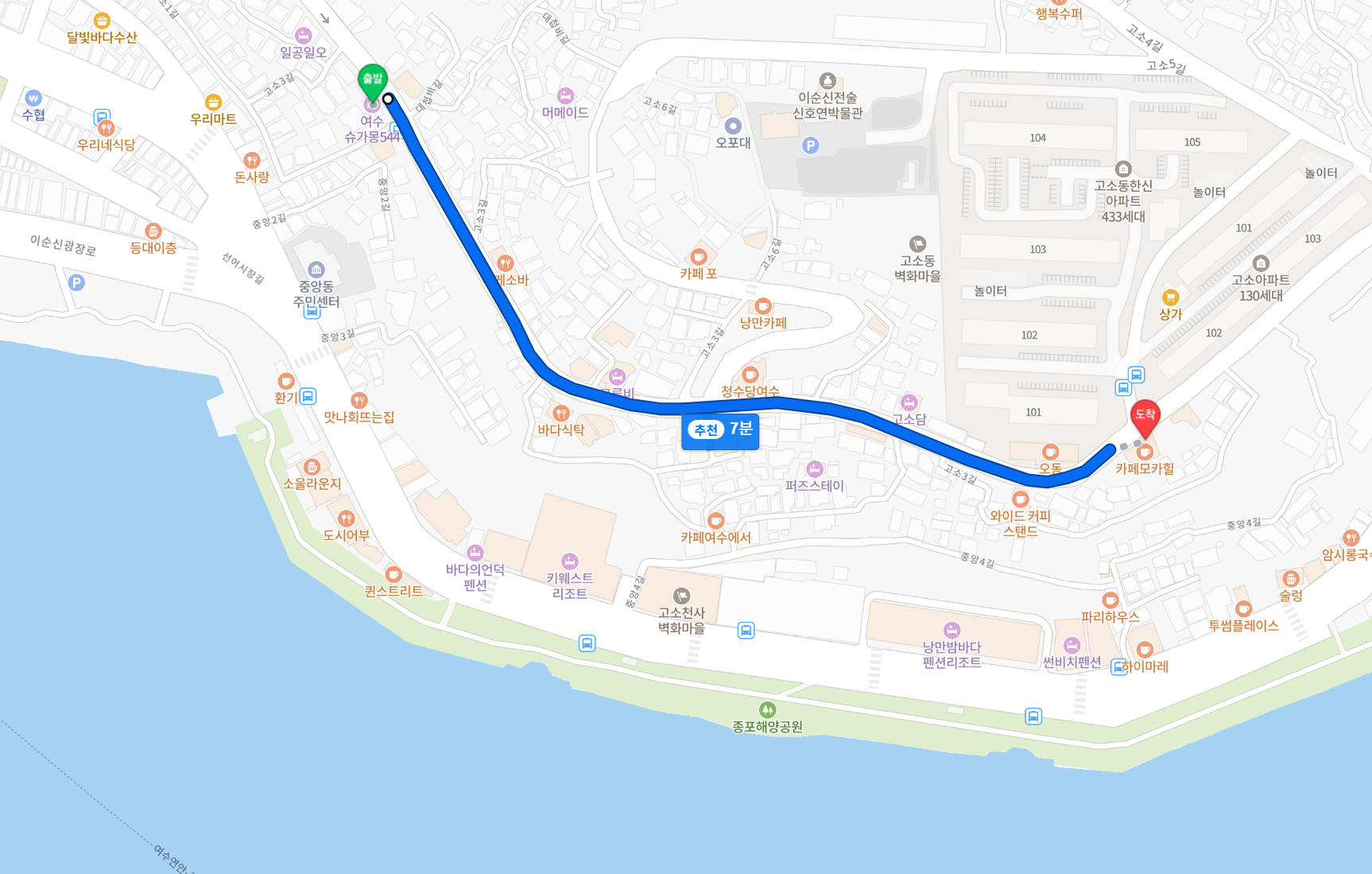 숙소(슈가몽 544)에서 여수찬까지 가까워서 차 두고 걸어갔다. 극성수기 아니어도 이 근방은 주차난이 꽤 심각하다.