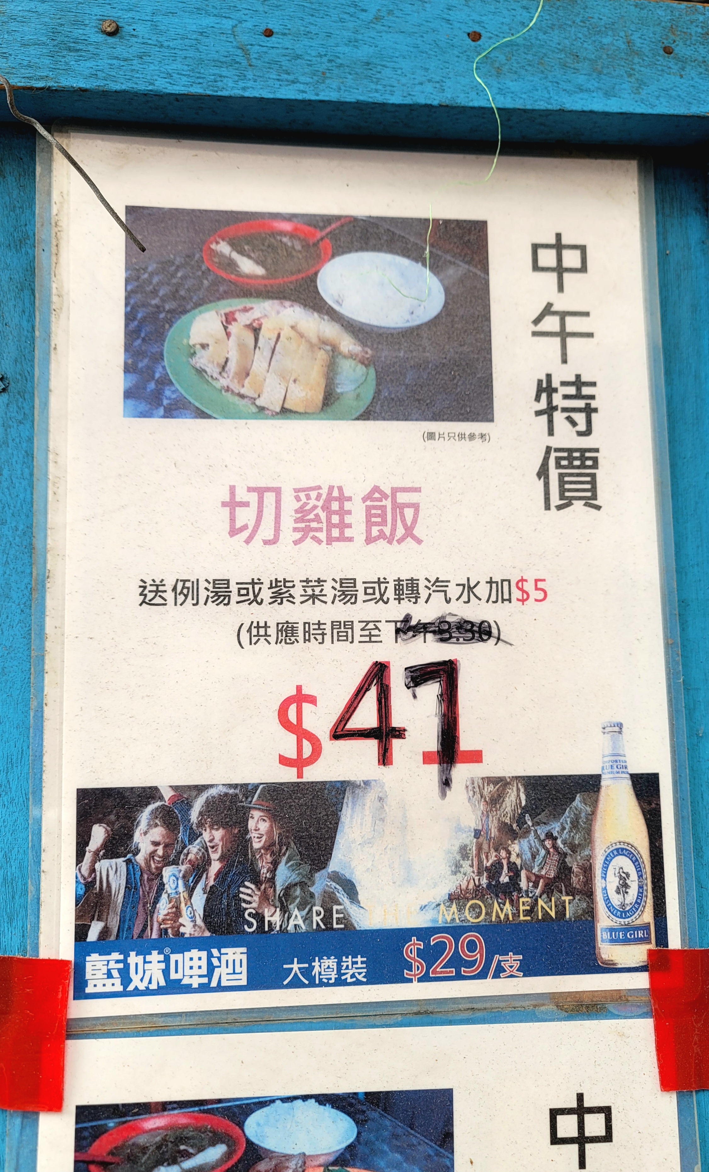 주문한 메뉴는 절계반(切雞飯). 삶은 닭고기를 썰어 밥과 국물과 함께 내주는 조주식 정식세트로 닭을 통째로 삶아 툭툭 썰어낸 소박한 치킨 요리다. 가격대는 홍콩달러 47불로 로컬노포 답게 저렴! 인터넷을 보니 주민들은 물론 밤에는 홍콩의 택시기사들도 즐겨찾는 조주(치우차우)식 동네식당이라고 한다. 그래서 그런지 뭔가 더 로컬 아지트같은 느낌.