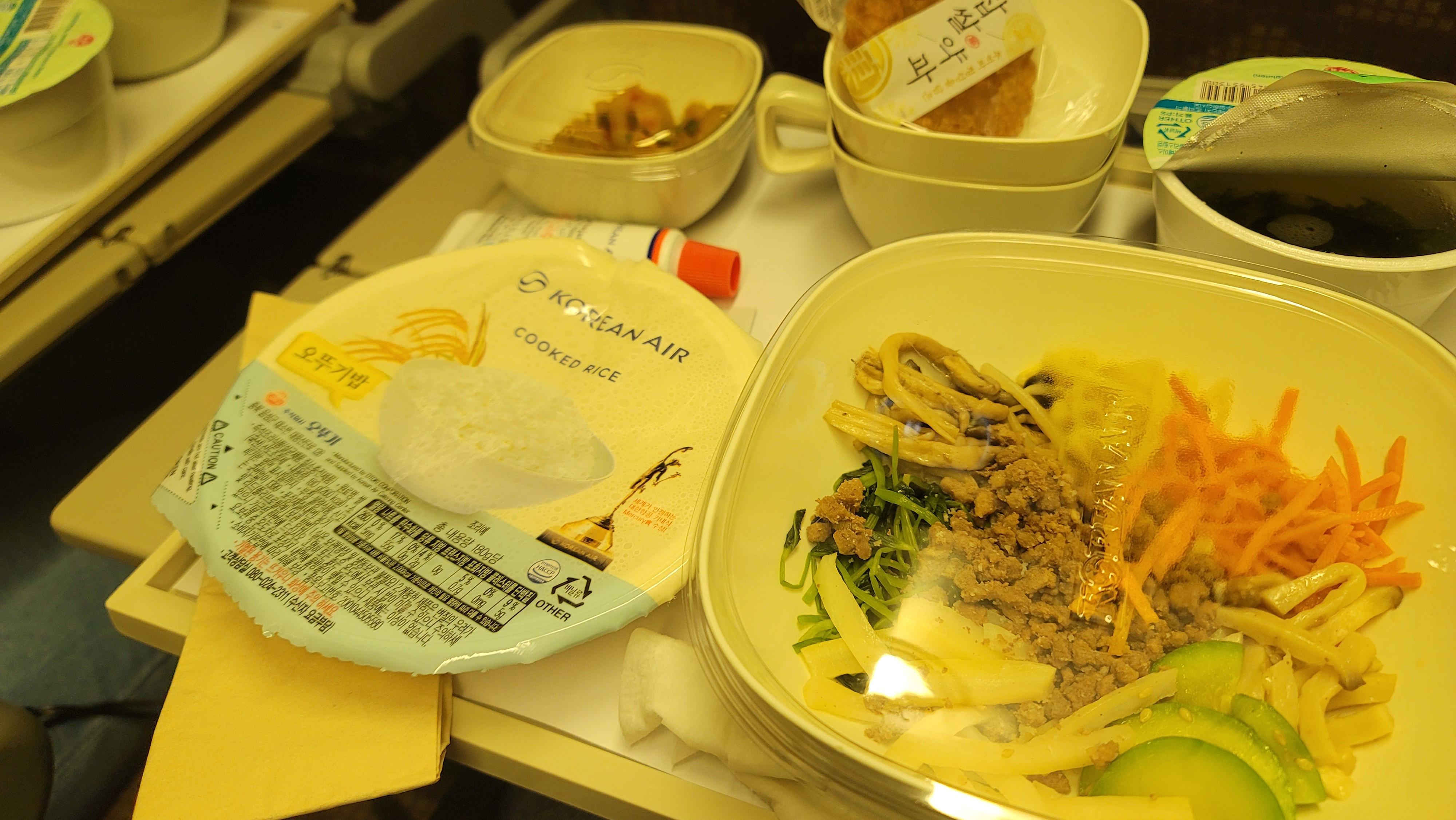 귀국행 대한항공 기내식, 기내식을 좋아하는 편인데 여행의 여운 때문인지 입에 잘 안들어왔다.