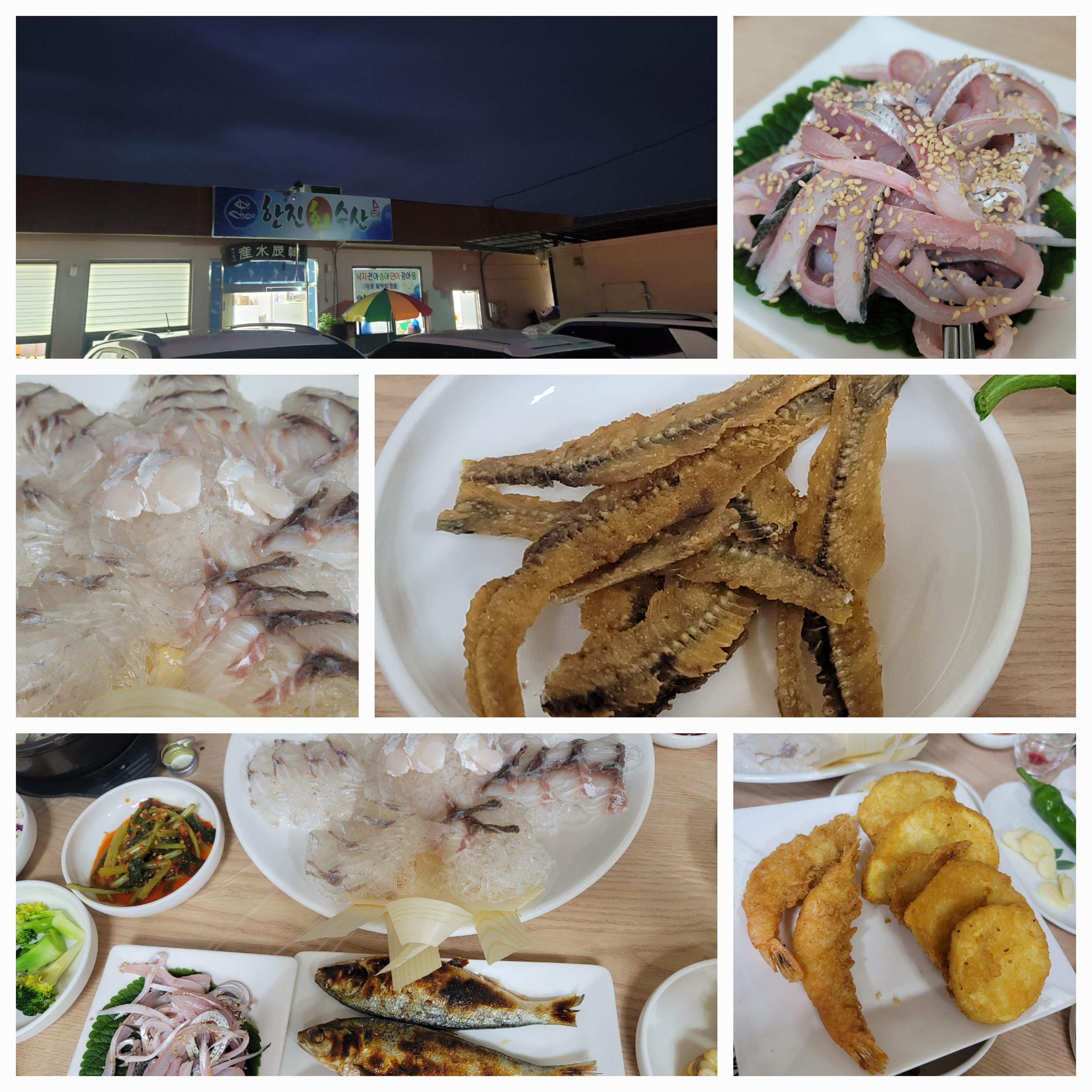 펜션 사장님 추천으로 무작정 가본 곳인데 첫 날부터 너~무 잘 먹었다. 농어회도 물론이지만 곁들이찬들도 너무 맛있었음. 전어무침 무지 꼬소~하고 특히 사이드일 뿐인 전어 뼈튀김이 너무 맛있어서 계속 달라고 해서 먹었다. 펜션에서 아주 가깝고 여행 와서 전국적으로 유명하지는 않지만 현지인 로컬 맛집에 방문해보고 싶다는 분들에게 추천! 재방문 의사 100%!