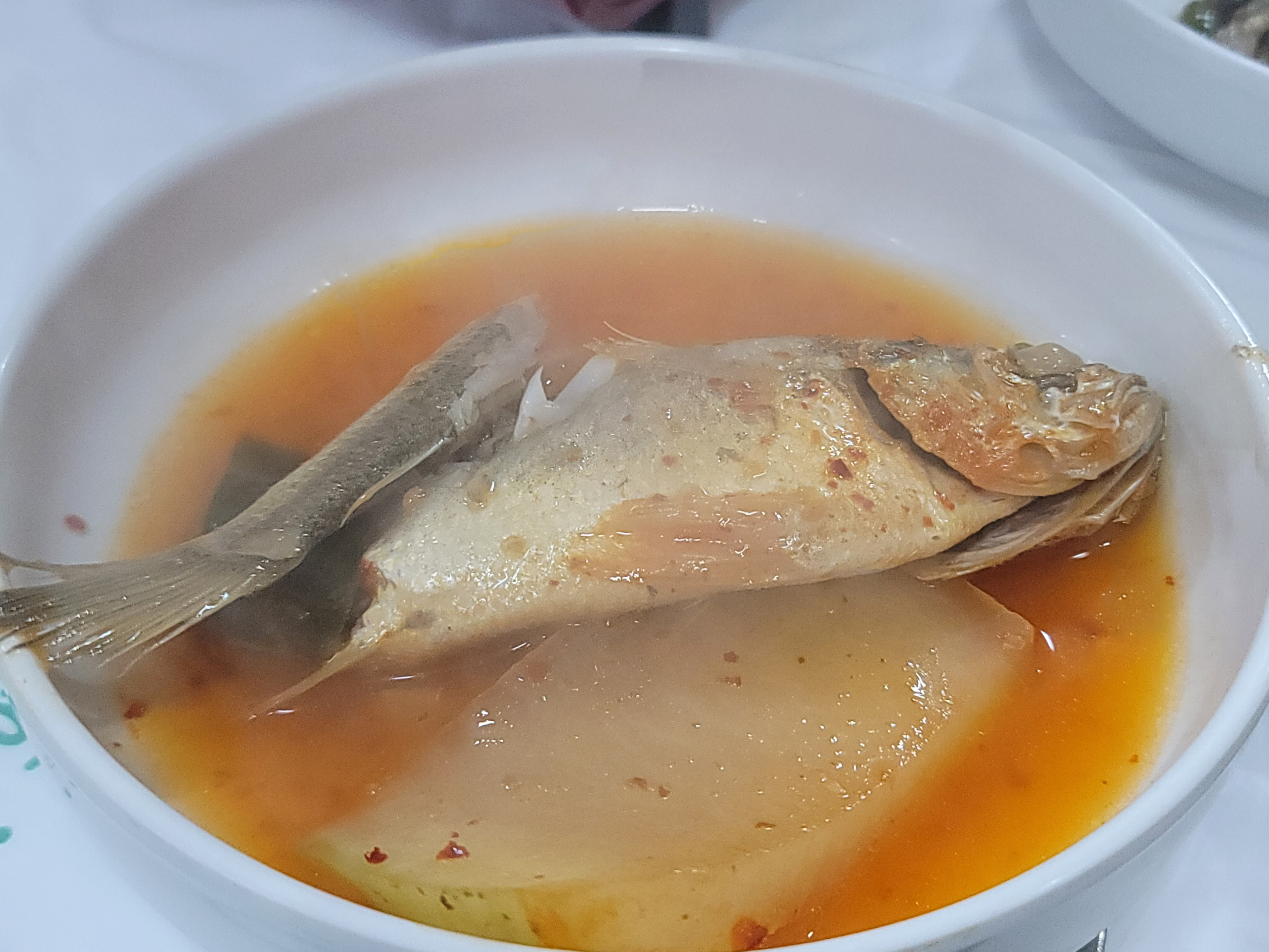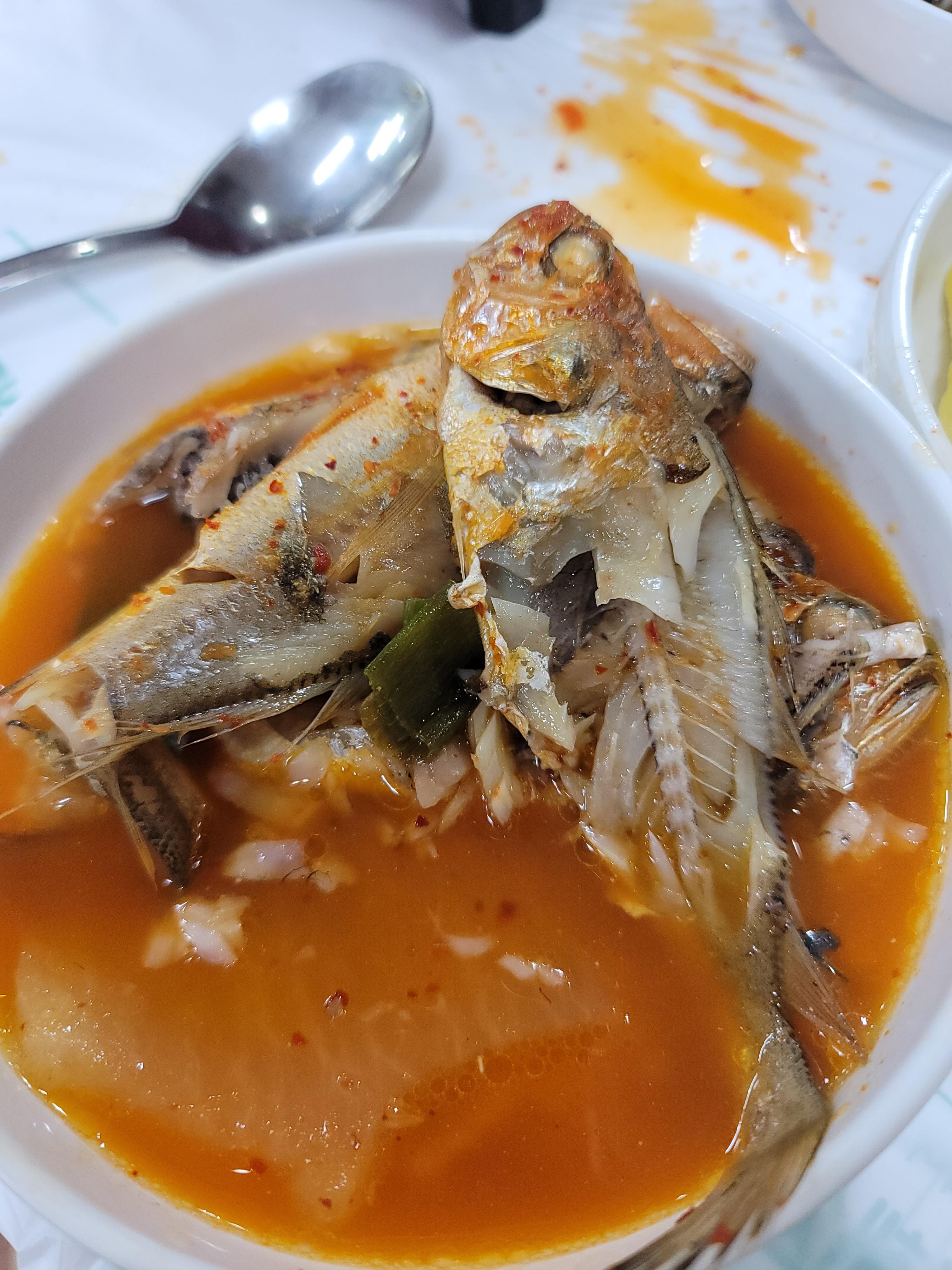 조기라고 해서 비린내 정도는 감수하자라는 생각으로 시켰는데 왠걸? 비린내 하나 없이 칼칼하나 적당히 매운맛. 짜 보이지만 생각보다 그렇게 짜지도 않은 것이 간이 잘 맞춰져 있다고 생각했다. 거기다가 부드러운 속살들 하며...