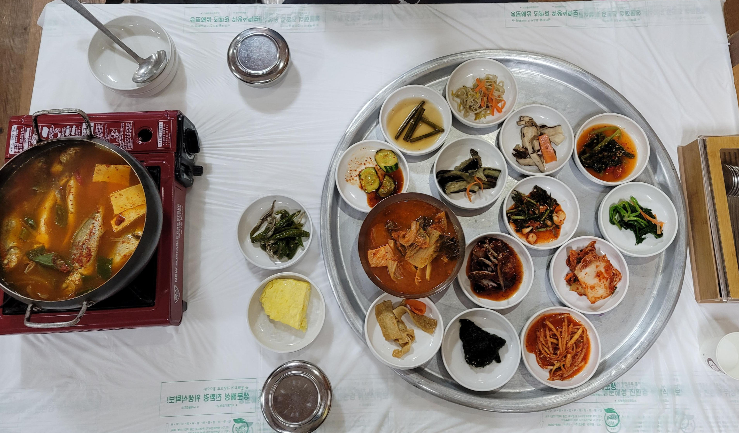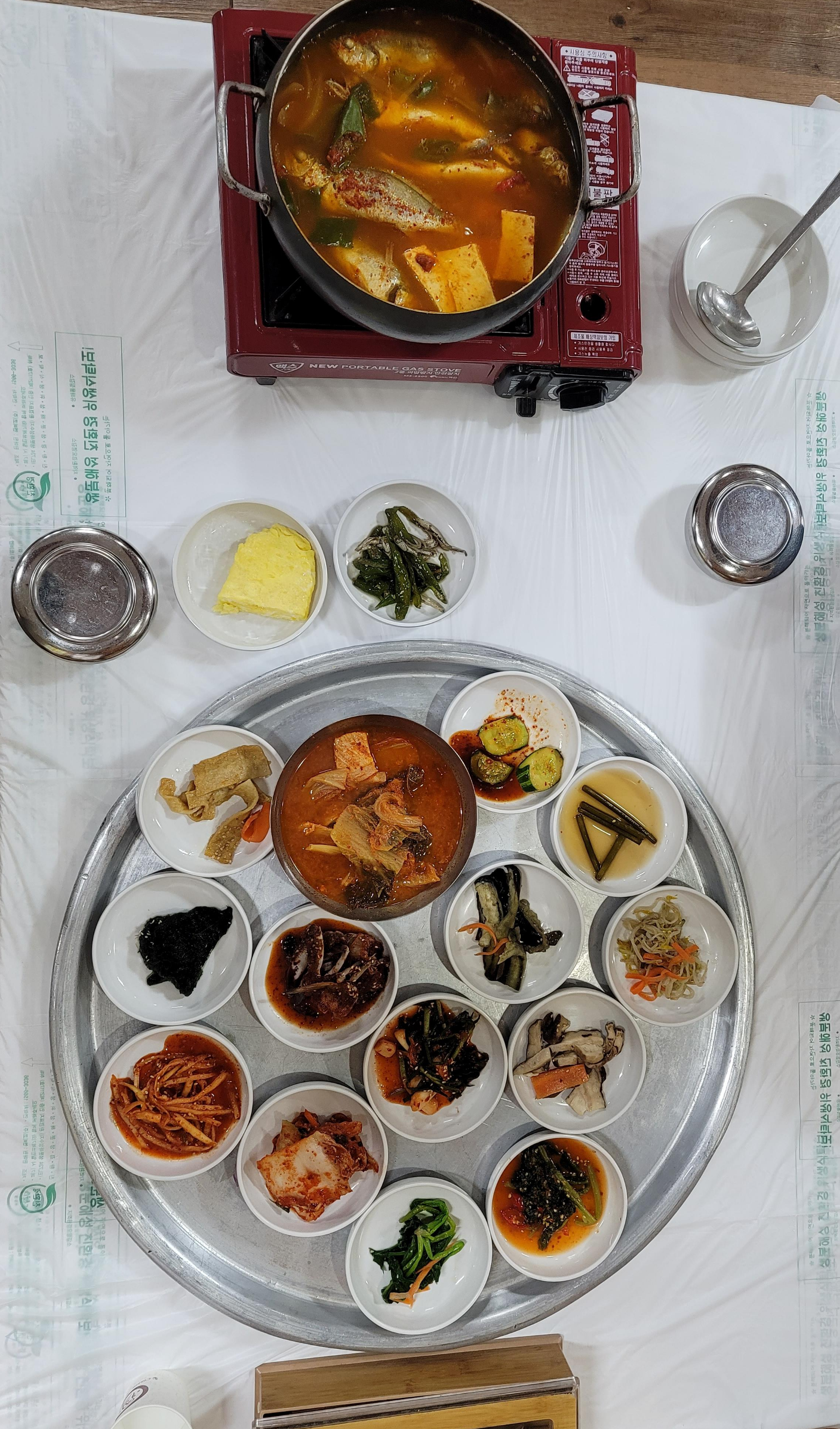 반찬은 역시 푸짐하다. (나중에 나오는 것까지 17첩이었던 듯) 아주 특출나는 건 없었는데 서울/수도권 가격 생각하면 가성비가 너무 좋다. 물론 맛없는 것도 아니다. 다만 하나 아쉬운 게 있었다면 돌집뿐 아니라 이번 여행에서 전체적으로 홍어집 빼고는 묵은지가 아닌 겉절이가 나왔었는데 아마 김장철이 다가오며 묵은지가 다 소비된 게 아닌가 하는 합리적 의심을 해보았다 (원래 여행 오면서 기대한 것 중 하나도 전라도 묵은지였는데 ㅜㅜ)