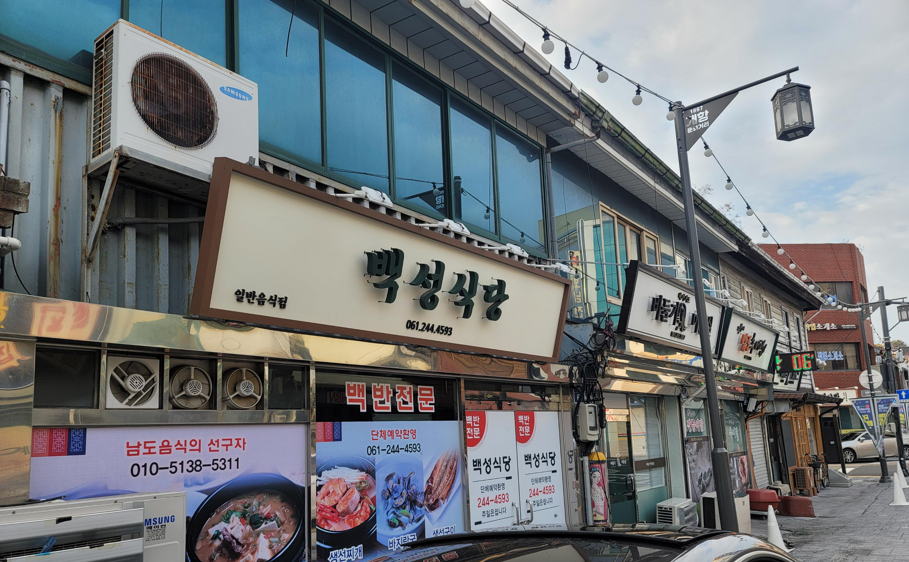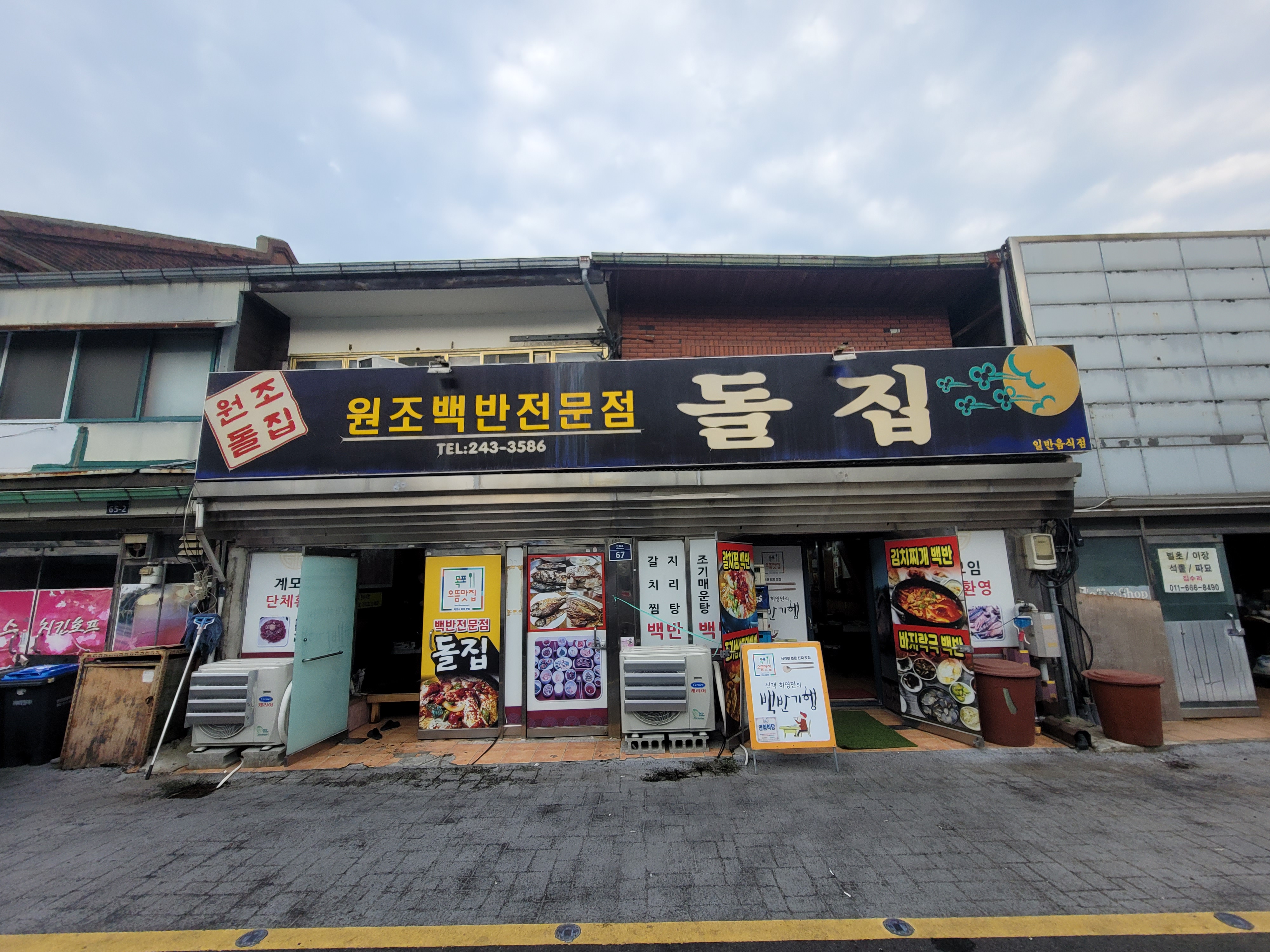다녀보니까 이 지역은 대부분 그냥 길거리 노상주차 하는 분위기였고 마침 바로 건너편인 백성식당이 휴무라 백성식당 앞에 주차하고 들어갔다. (다음 날엔 백성식당에서 먹었는데 우연찮게 또 돌집이 휴무라 그때는 돌집에 주차함 ㅋㅋ)