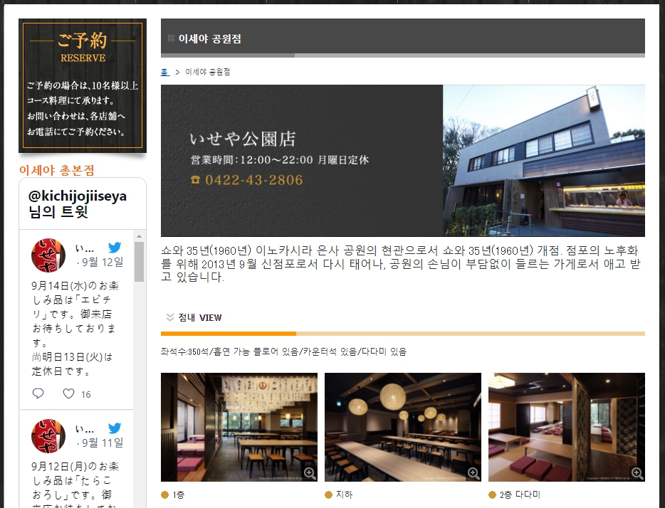 공홈에서 퍼 온 사진인데, 지금은 깔끔하게 현대 식으로 리모델링이 된 것 같다. 내외부를 연결시켜 주는 (내부에서는 뷰, 외부에서는 포장판매) 가게 건물의 시그니쳐 공간인 주방과 입구는 그 형태를 어느 정도 유지하고 있고 모던하게 다시 태어난 모습이다. 2층 또한 옛 박스 형 구식 건물의 메타포를 간직하고 있다. 노포는 옛 공간의 기억과 추억이을 끌어내는 노스탤지어의 감성이 매우 중요하다고 보는데 지금 옛날의 맛을 느낄 수 있다 없다를 떠나서, 적어도 이세야를 리모델링한 건축가는 이 중요한 부분에 대한 신경을 쓴 것이 느껴지며 건물주도 이를 받아들인 것 같다. (옛과는 전혀 다른 새끈 한 건물로 짓지 않아서 너무너무 다행이다)