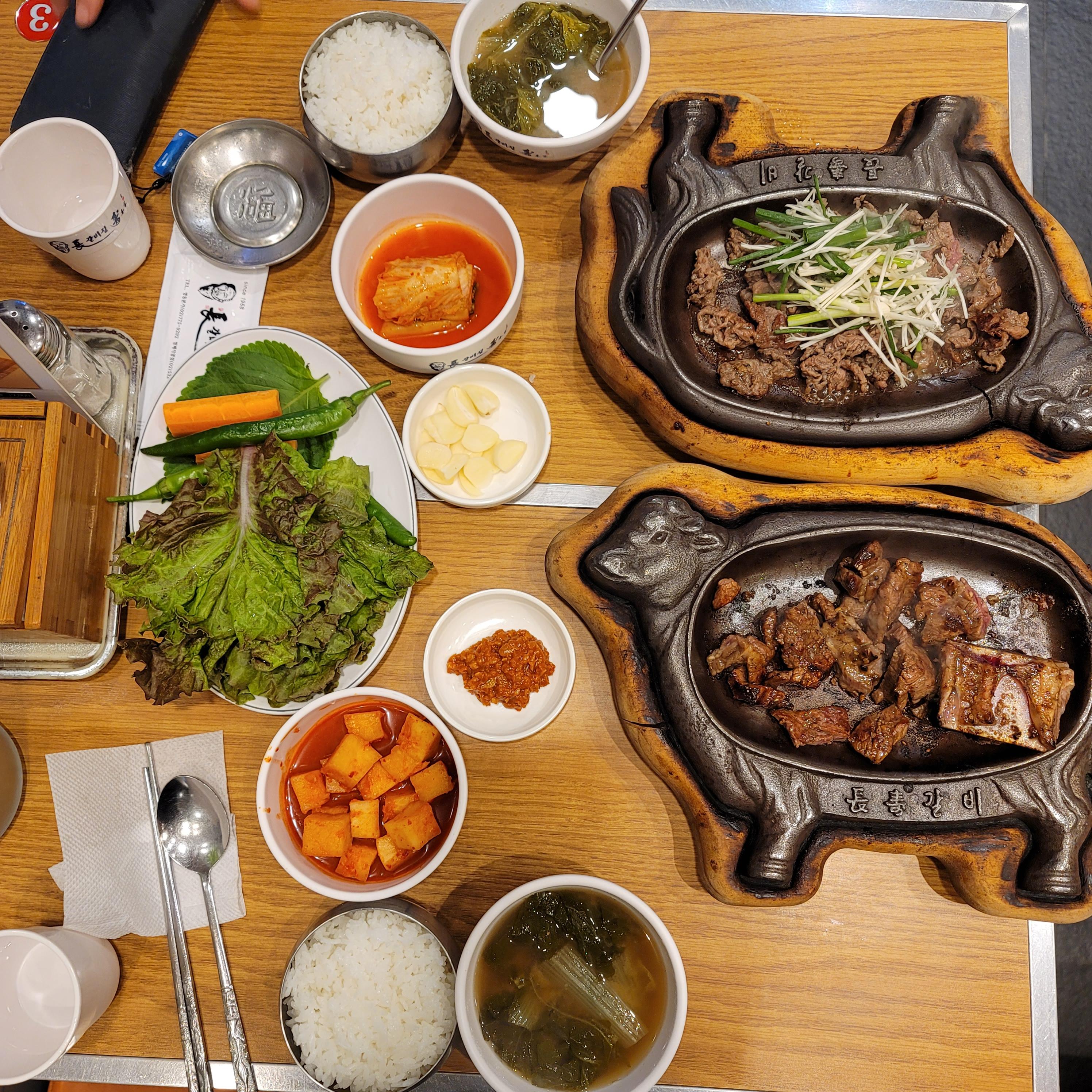 음식점 들어오기 전에 공복으로 한 1시간 30분 돌아다니다 온 영향도 있긴 하고, 오늘 많이 걸어야 하는데 정말 많이 먹었다 배가 터지도록... 난 소식가다 (고기 150g도 겨우겨우). 일반인들은 이 150g에 만족은 못 할 수도 있다고 생각한다. 포스팅에 올린 사진이 한 점도 안 먹은 사진이다. 양이 적어 보이긴 한다. 그래서 김치에 된장국에 밥말아 먹고... ㅋㅋㅋ 암튼 반찬 리필, 얼갈이 된장국 리필 등등 쌈도 싸먹고 아점인데... 또 걸어야 하는데 그래도 맛있는 걸 어떡하나... 먹고 먹었다. 담에 가면 갈비국, 국밥 메뉴도 먹어봐야겠다. 그리고 또 그 담에 또 가게 되면 갈비만 시켜 먹어야겠다