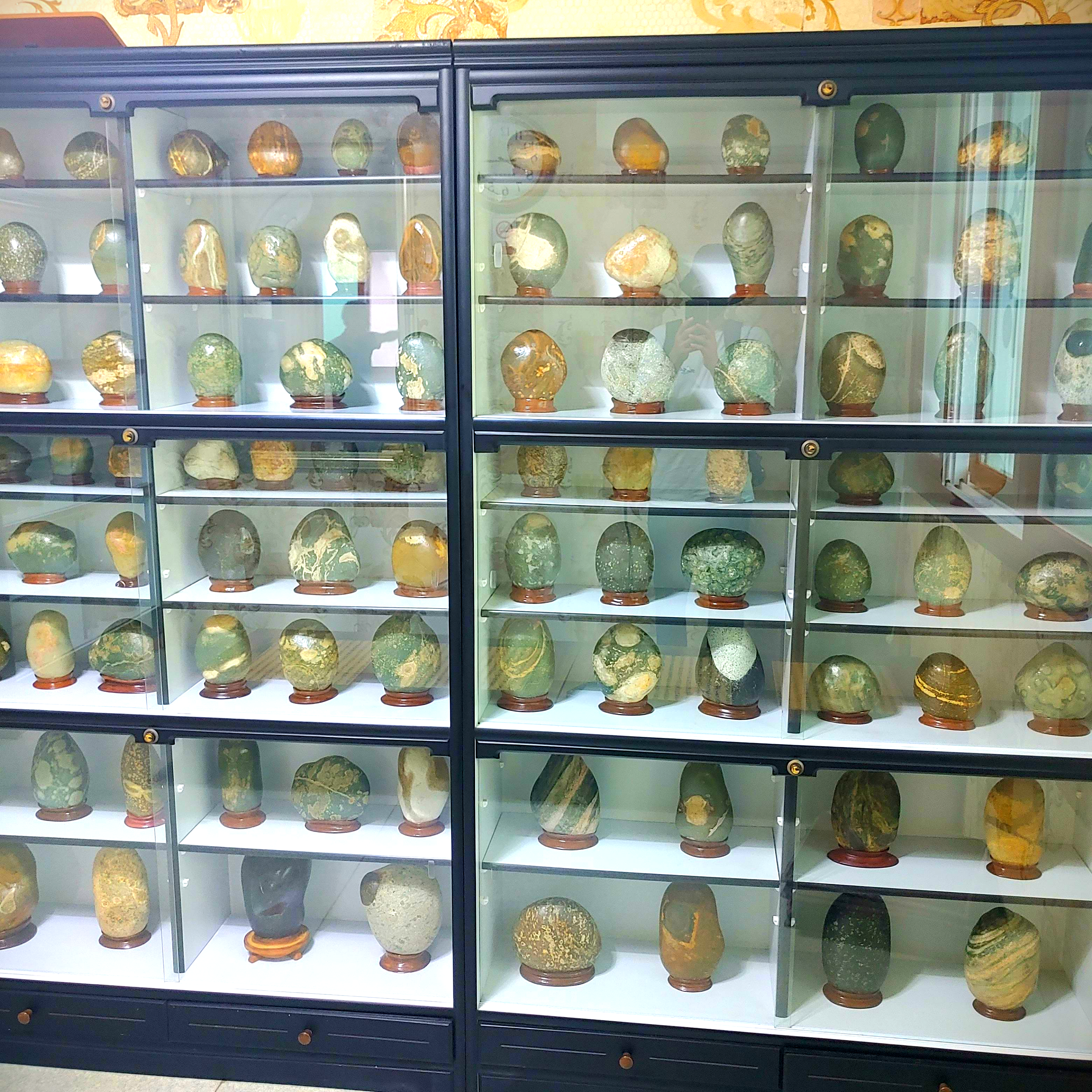 항상 새벽 같이 일어나 활동하다 보니 이 날도 첫 손님이었다. 일반 집을 음식점으로 개조해서 쓰는 집으로, 방에 들어가니 수많은 수석 수집 전시가 펼쳐진다.
