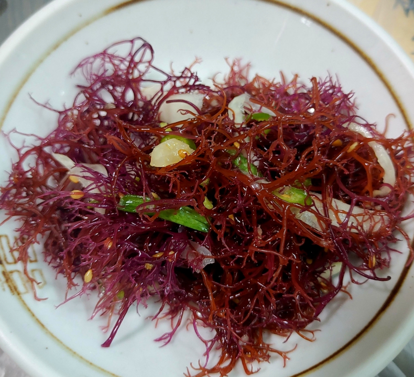 그리고 이름을 알 수 없는 깔끔하고 비주얼만 봐도 건강해 보이는 사이드 반찬. 섬이다 보니 특히 이 (나중에 찾아봄) 세모가사리가 참 맛있고 건강에도 좋은 느낌이 이었다. 점심 저녁보다는 아침에 이런 거 먹으면 더 건강한 느낌이 난다.