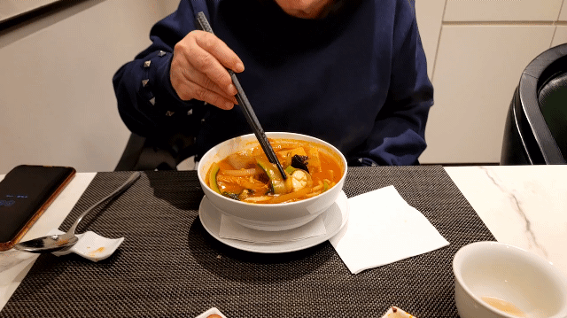 광둥어 못하는 티를 잔뜩 내며 메뉴판만 멀뚱히 보고 있으니 사장님이 옆 테이블 로컬 할아버지 테이블에게 가서 “이거 먹으라”신다. 갑작스러운 지목에 할아버지는 ‘이게 머시여?’ 하는 표정을 잠깐 지으셨다. 결국 추천 받은 아침 세트로 주문. 영어는 잘 통하지 않았지만 옆 테이블 홍콩 중년 커플이 친절하게 중간 통역을 해주셨다(음꺼싸이~!).