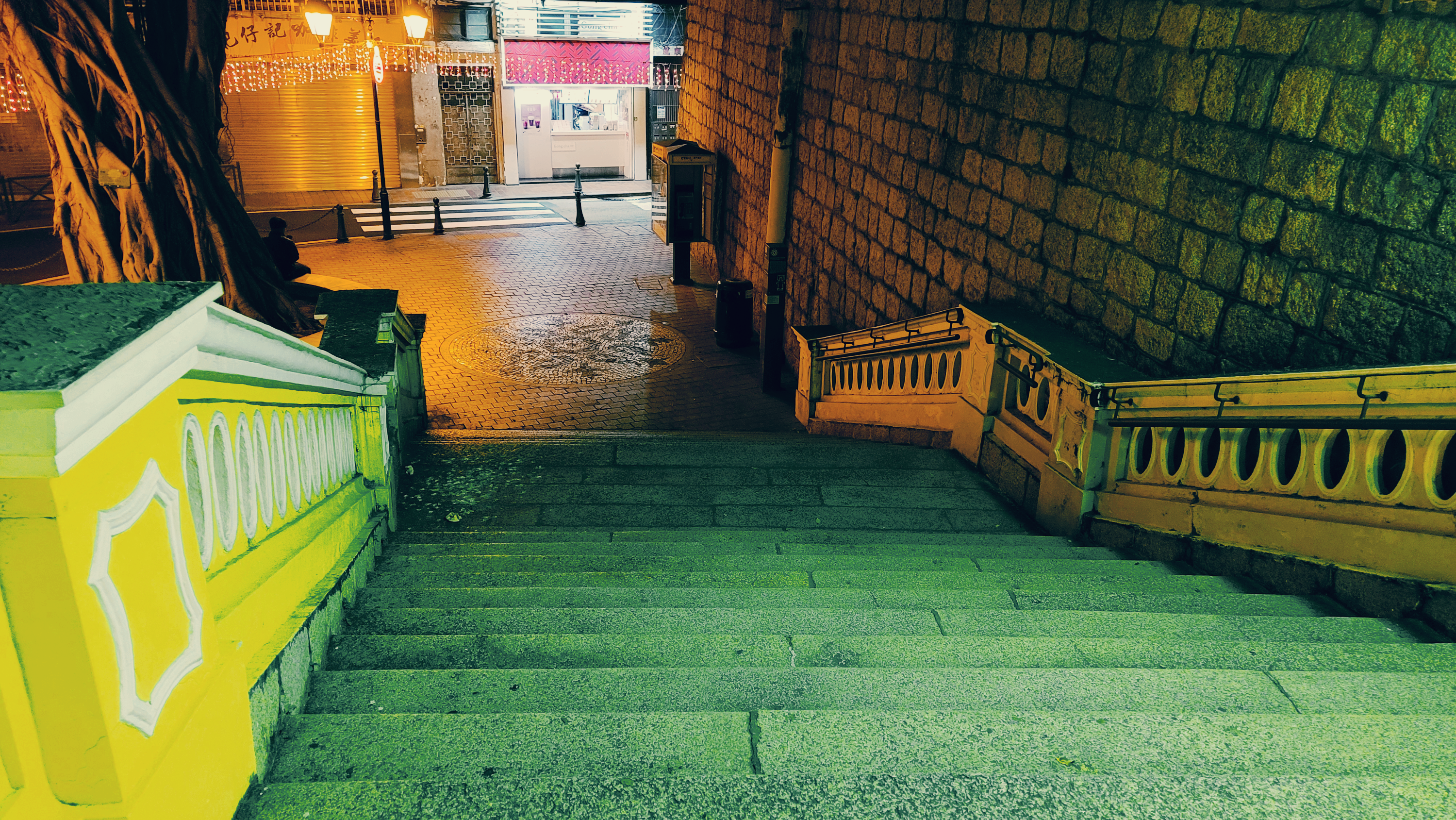 해가 뜬 오전 8시 경 인적없는 파이샹 골목의 모습, 영화 속 스폿 - 현장 메모: 세나도–성바울 축은 종일 인파가 몰리는 것으로 악명이 높다. 당일치기 방문이 많은 탓에 시간대 편차가 크다. 영화의 정서를 느끼려면 해뜨기 전~이른 아침(8시경)이 가장 적합하다. 영화 속 우리가 보는 장면에서 실제 캐릭터들은 무엇을 바라보고 있는지 궁금해질 때가 있다. 이곳에서는 실제로 영화 속 얀처럼 구멍에 몸을 넣고 계단을 봐볼 수 있었는데 다행히 그 시각엔 아무도 없어서 어색하진 않은 행위였다.