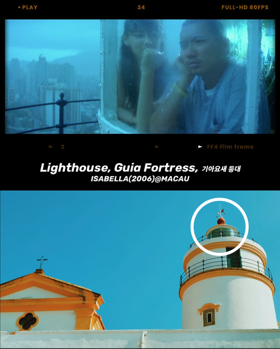 - 영화 속: “마카오는 참 작아요”라는 대사와 함께 마카오 반도 최고봉에 위치한 등대에서 도시를 내려다보는 장면. 관객은 그 뷰를 직접 보지 못하지만 얀에게는 미래의 희망, 싱에게는 벗어날 수 없는 현실이 겹쳐지며 가능성과 회한이 교차하다. 등대 내부의 톱니가 돌아가는 모습은 반환을 앞둔 도시의 시계 장치처럼 작동하며, 같은 ‘시간’의 은유를 다룬 <중경삼림>의 통조림 장면과 닮았지만 정조는 정반대다.