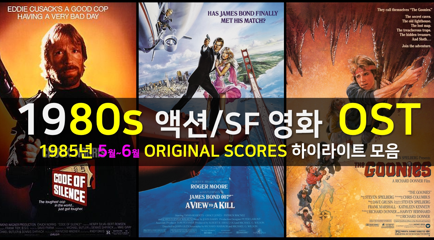 80년대 초반과 마찬가지로 70년대 액션의 Funk/Disco/Orchestral 음악들과 OST에서 새로 태동하는 전자음악이 갈리던 시절이었다. 1985년 1월~5월까지다 보니 중반이라곤 해도 초반의 영향에 가깝다 보니 70년대의 감성이 아직은 많이 교체하는 것 같았다. 어찌하였건 신디사이저를 기반으로 한 다양한 OST 시도들이 돋보이는 시절임에는 분명했다. 음악 씬에서도 신디사이저의 출현 이후 많은 전통 악기 기반 아티스트들이 전자음악 (비틀즈 마저도) 시도를 보여준 것처럼, OST 신에서도 정통인 오케스트랄 음악에서 전자음악의 시도를 한 이들도 많이 보였다 (가장 좋은 예 중 하나가 영화 <위트니스>의 음악가 모리스 자르)