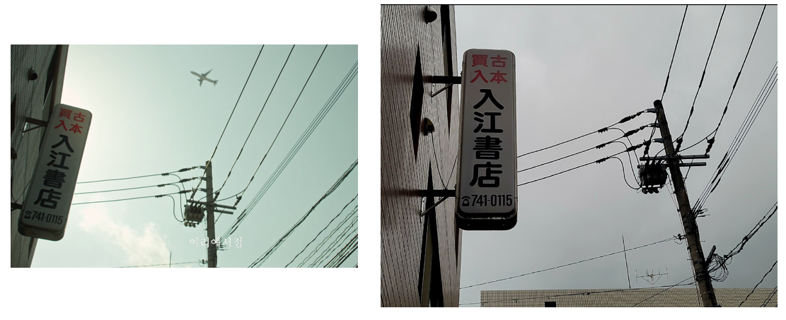 문득 비행기가 하늘을 날아가는 풍경을 배경으로 찍었던 이리에 간판이 보이는 영화 신이 생각나 찍어 보았다. 하지만 내가 찍을 때 비행기는 날아가지 않았다. 좀 기다려 볼 걸 그랬나. 그러고 보니 이 도시는 건물은 후딱후딱 바뀔지언정 전봇대는 잘 안 바뀌는구나! ㅎㅎ