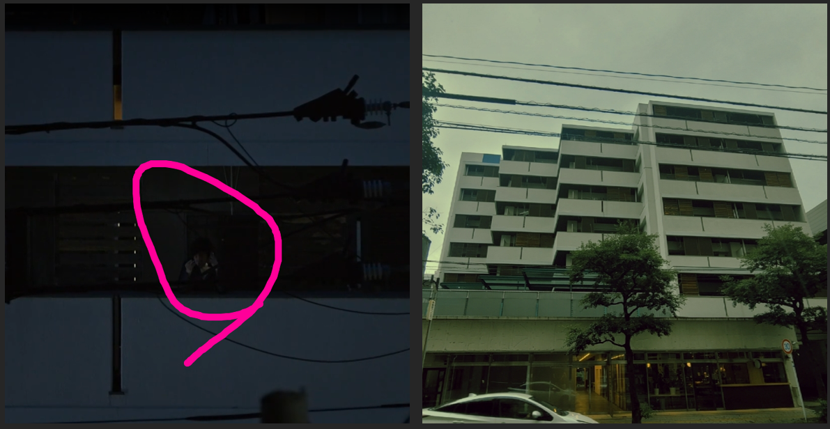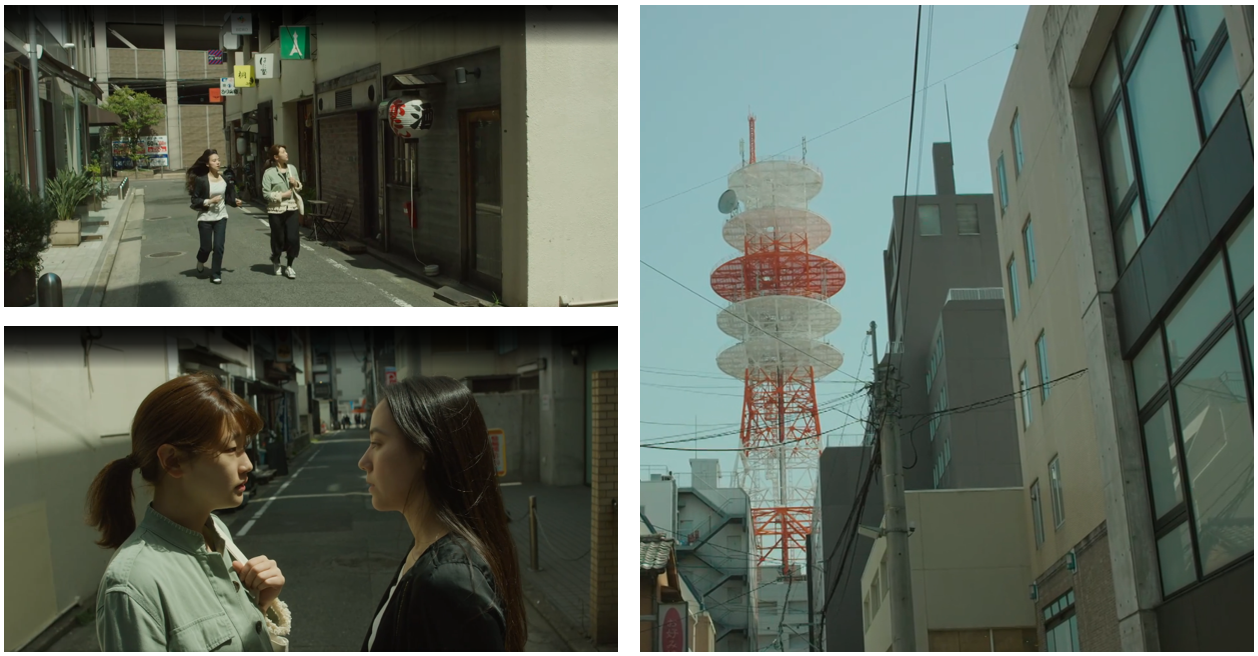 계확: ... 신타카사고 멘션이라는 곳으로 소담이 에어비엔비로 예약한 제문과 소담의 숙소로서, 중후반 부에 도시의 야경을 보면 제문이 담배를 피우는 곳이기도 하다. 나무위키의 '숙소' 설명은 아마 영화 스태프들의 진짜 숙소인 것 같다.