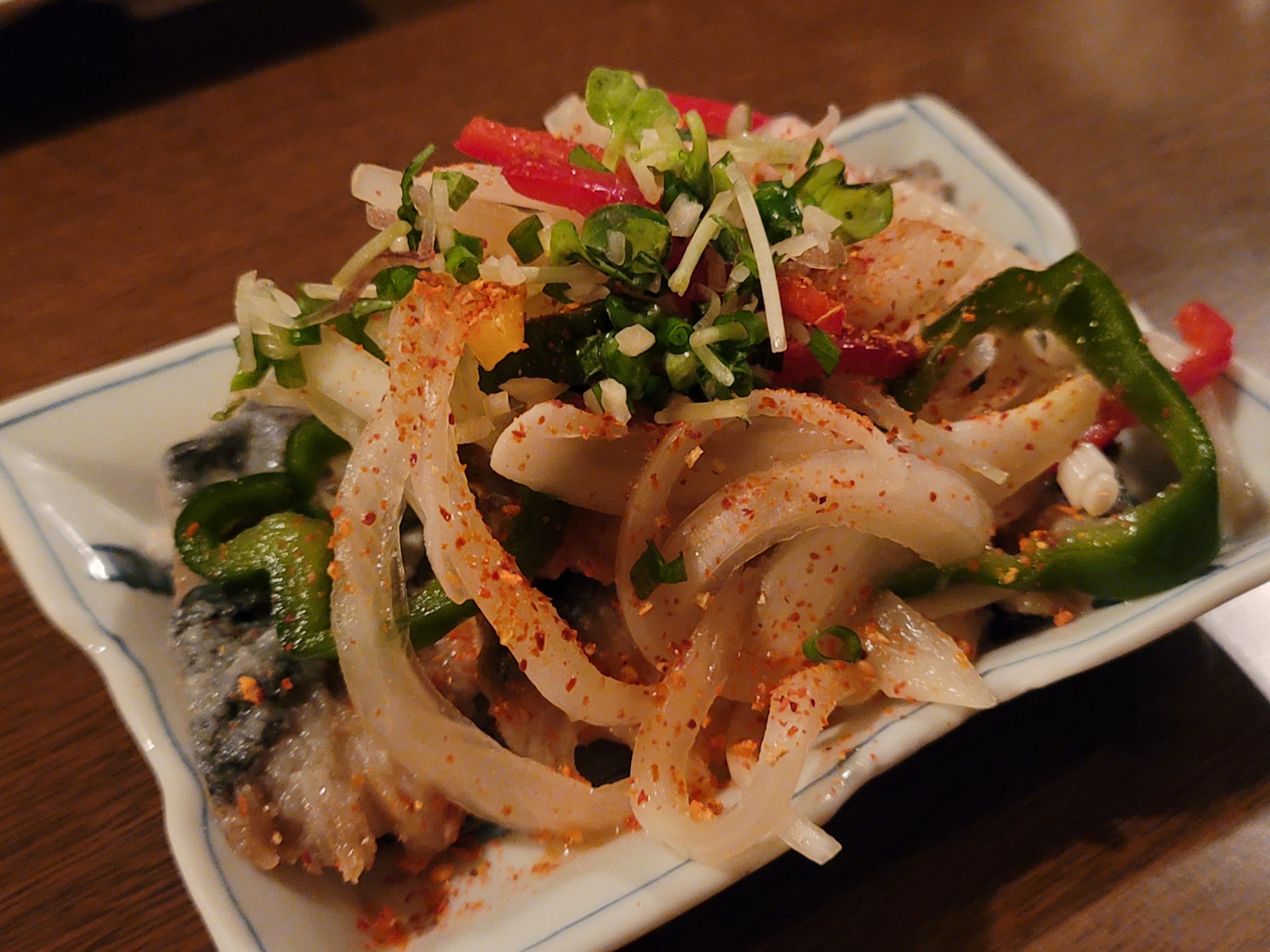 먹은 건 새콤한 야채절임이 올려진 삼치였는데, 나도 삼치 좋아한다고 하니 제주도나 후쿠오카나 어장이 비슷해서 그 생선이 그 생선일 거니 맛은 한국에서 먹던 거기서 거길거다 뭐 새로운 거 없을 거다라고 웃으며 얘기하시는데 뭔가 오잉? 하며 그럴듯한 얘기였다!