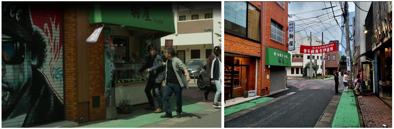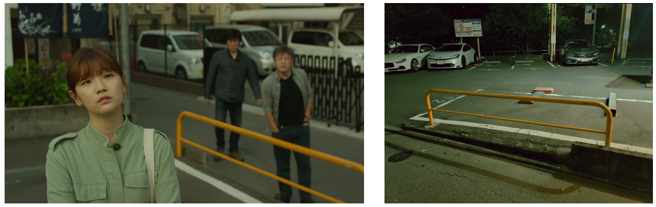 영화 후반부의 장면인데 바로 가계 옆 주차장이었다. 이자카야를 나오면서 발견하고 밤 배경으로 한 장 찍었다.